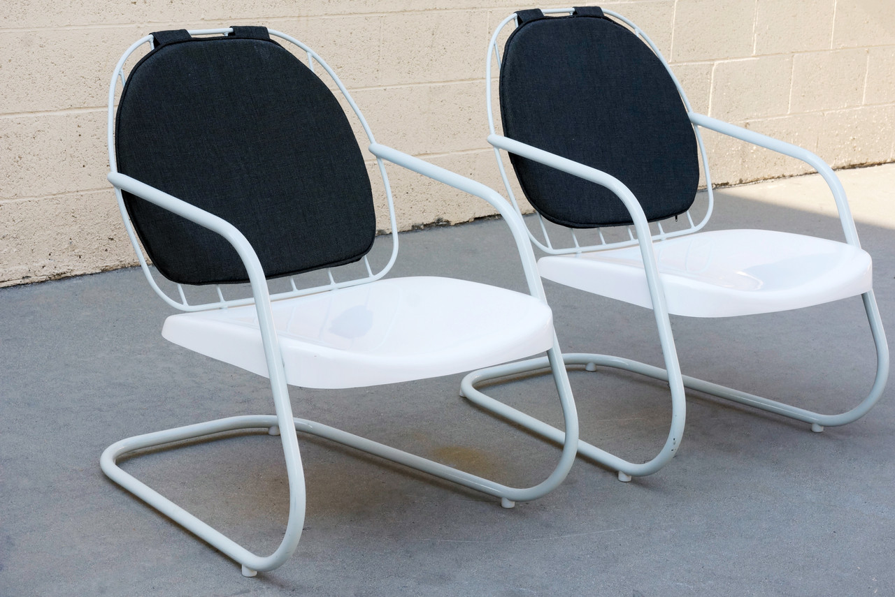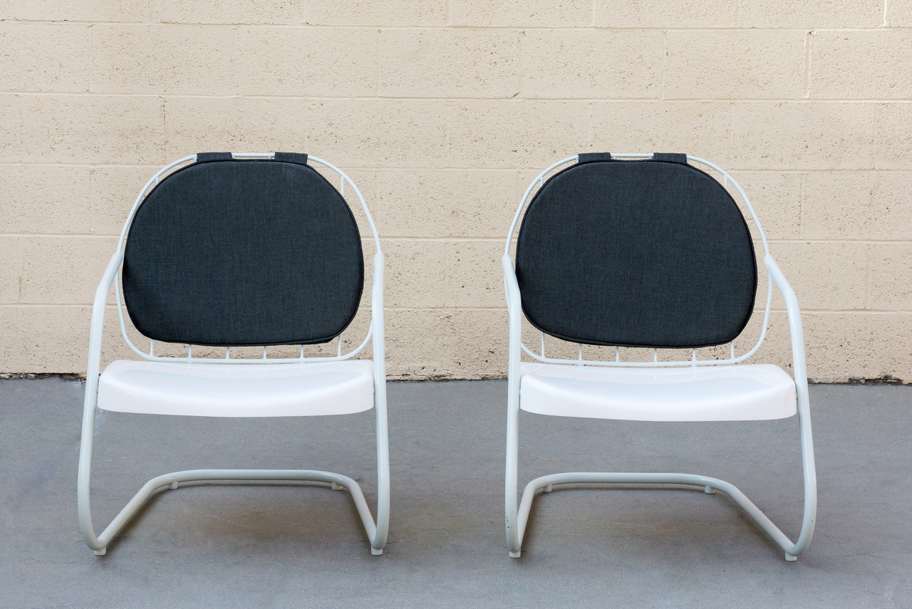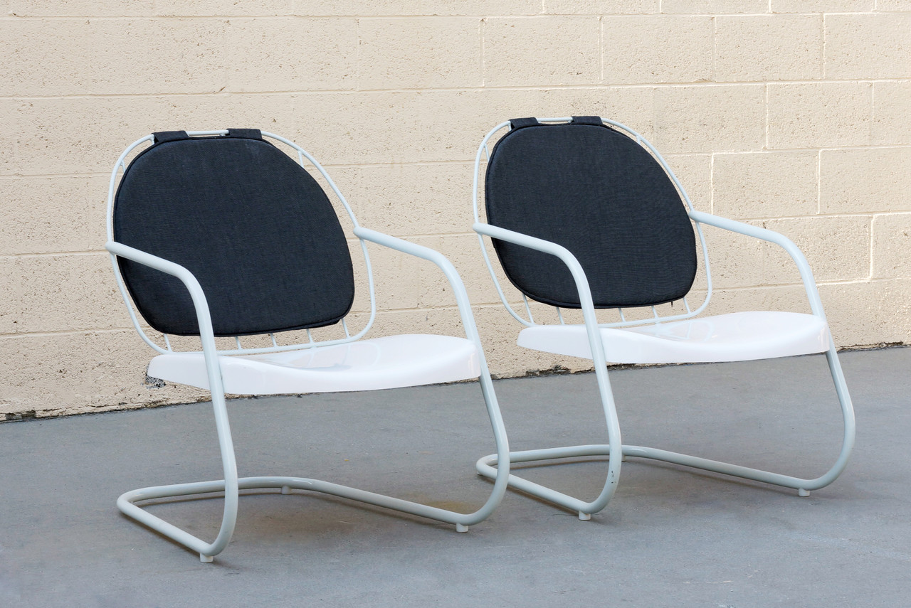 Pair of "like new" patio lounge chairs from the Ilan Dei Venice Cruiser Collection. Please note minor loss to bottom inner corner of one leg as pictured.
