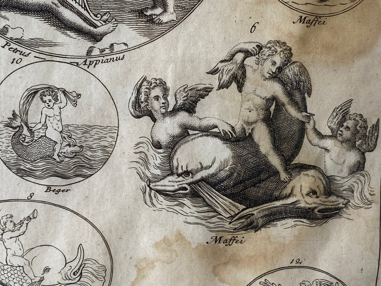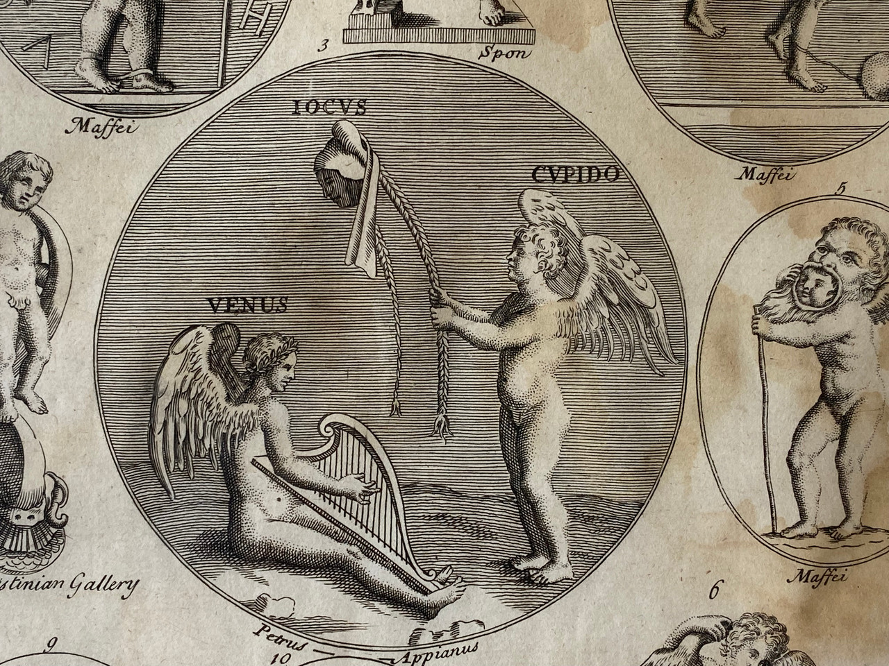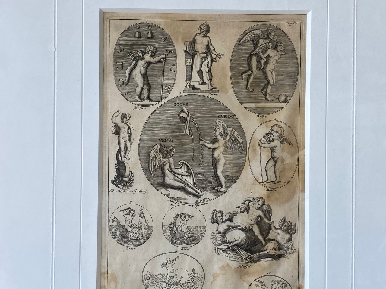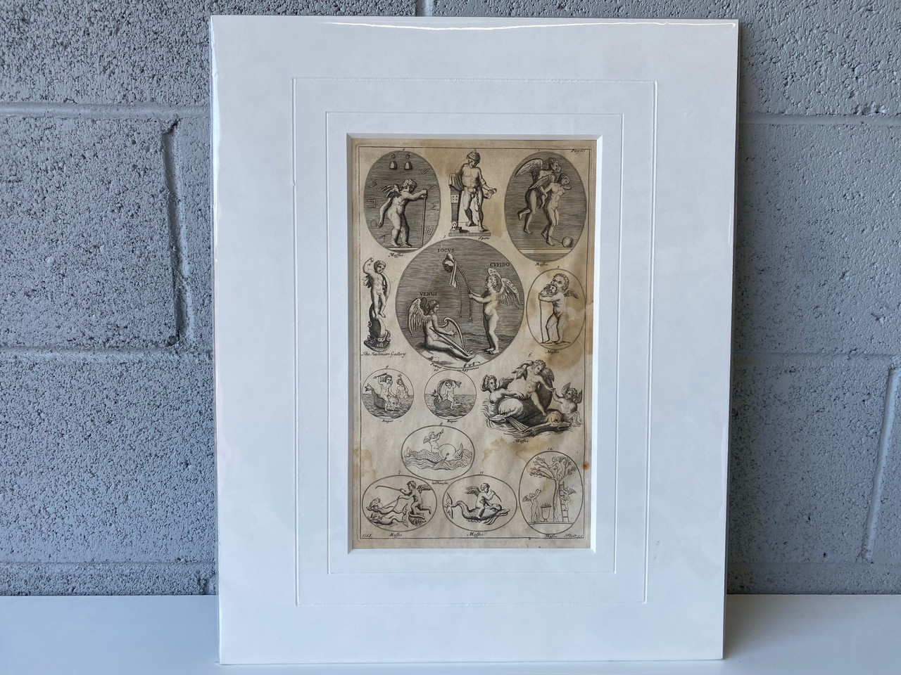 1800s print featuring Roman mythology figures including Cupid and Venus. In excellent vintage condition as pictured.