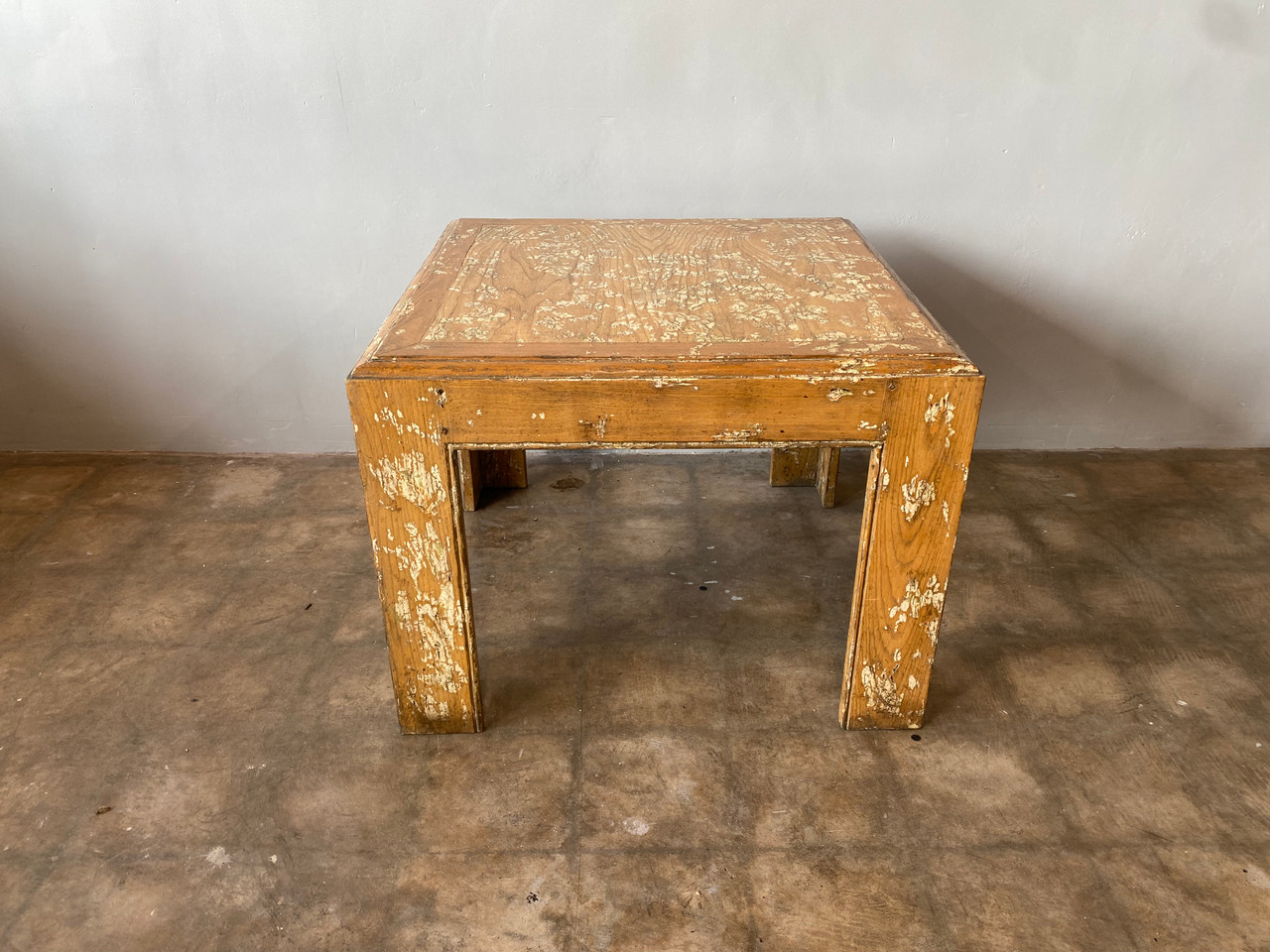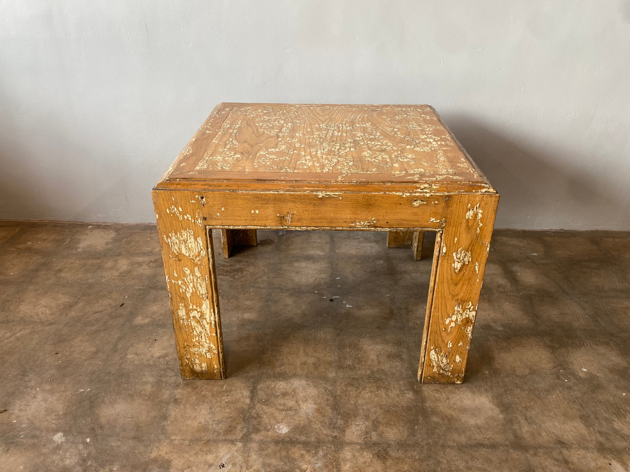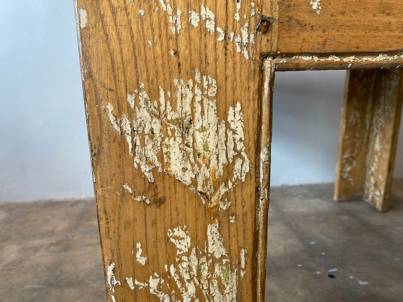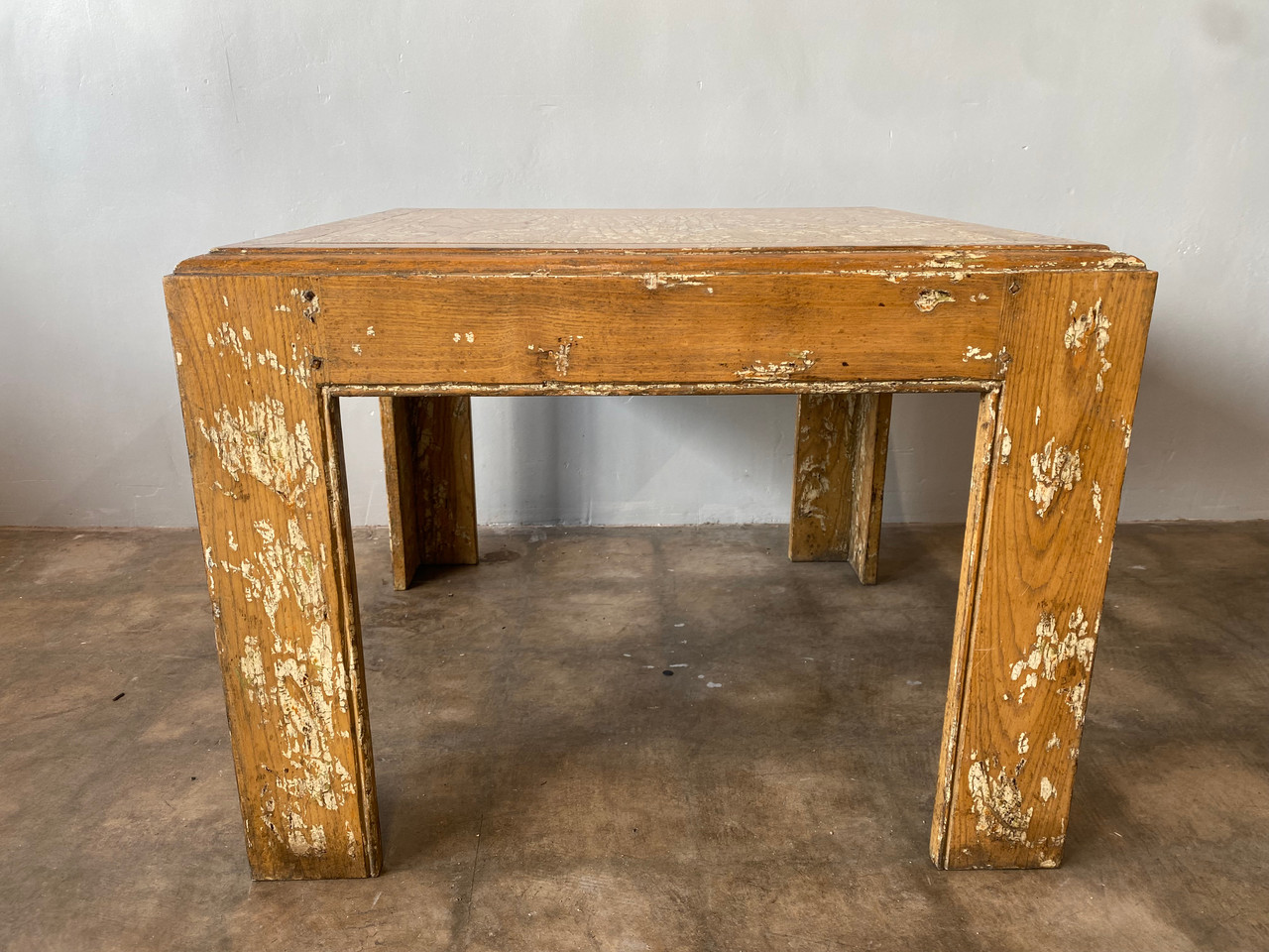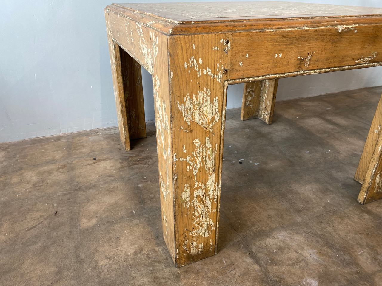 Stunning vintage American oak coffee table with a painted and natural distressed finish. Circa 1970s.