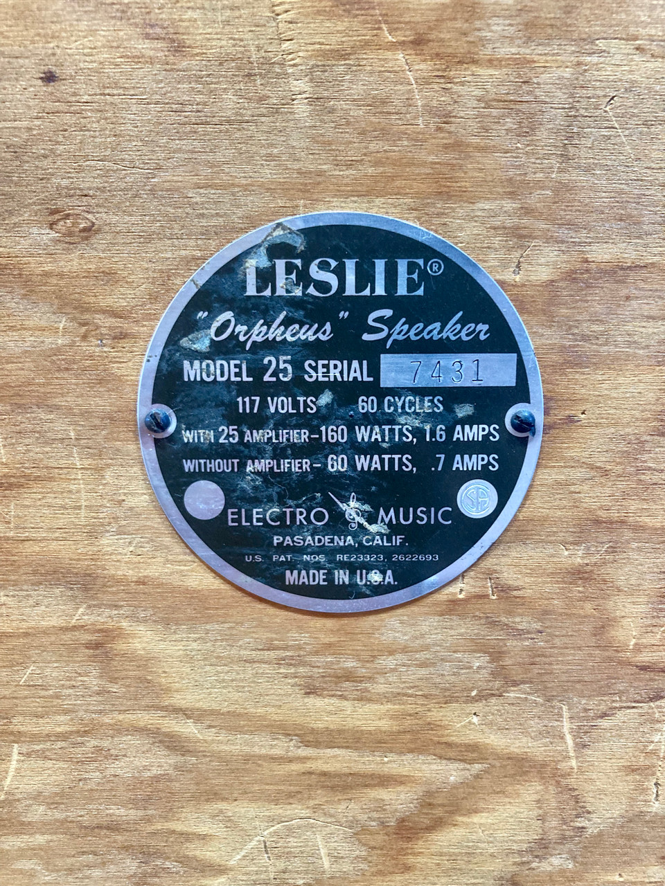 Often used with mid-century Hammond organs. Made sometime in the late 1950's to early 1960's. Walnut wood frame, with wear consistent with age and use. Fully functional and recently tested.