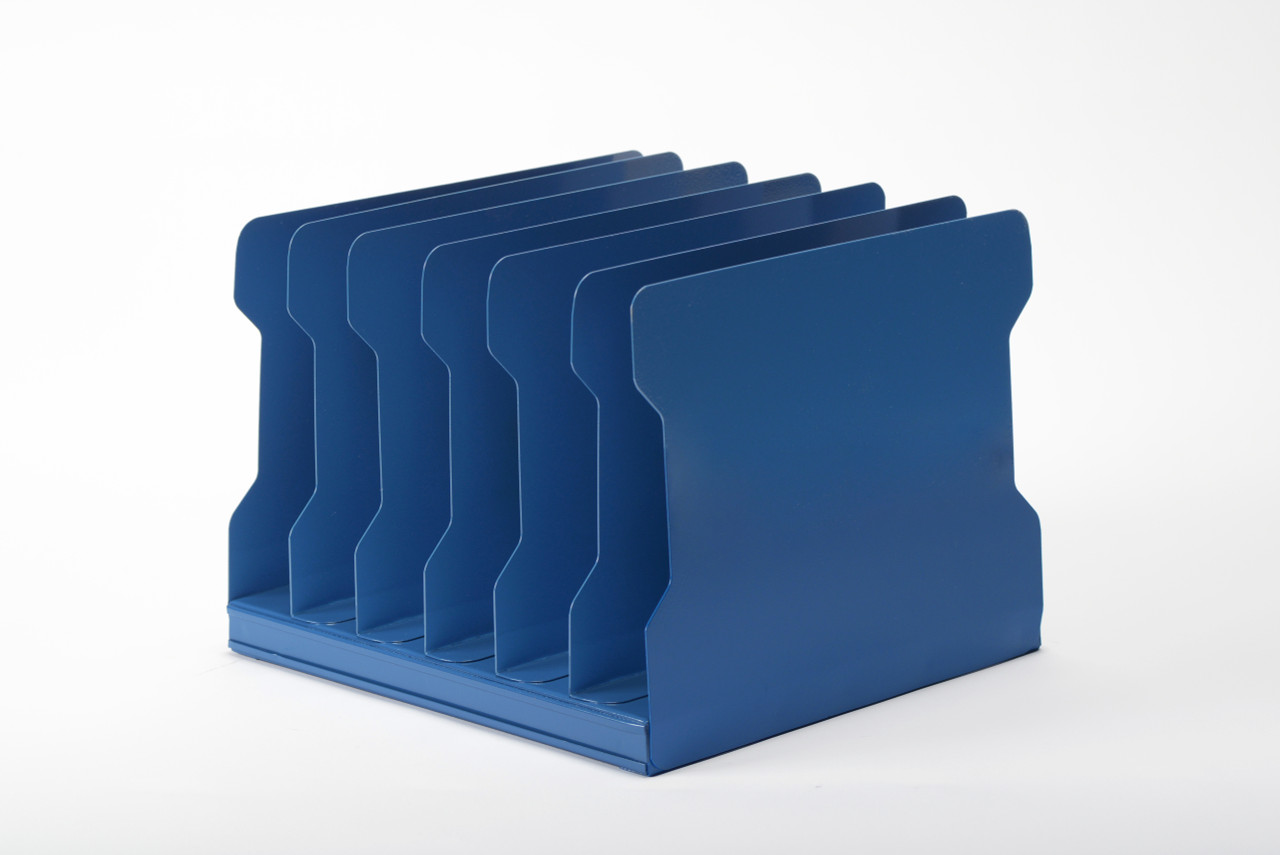 Wonderfully retro desktop file organizer from the 1940s. Vintage steel refinished in Moon Blue powder coat. Six slots, perfect for keeping all your important papers in one tidy place.