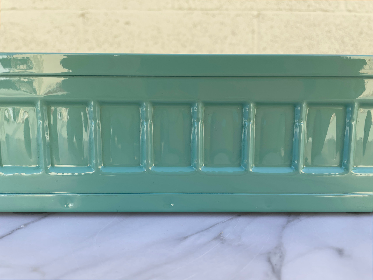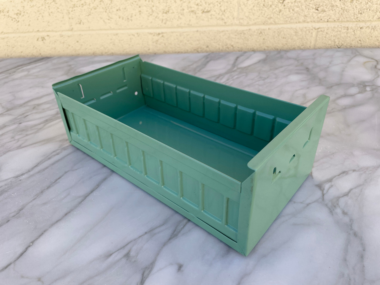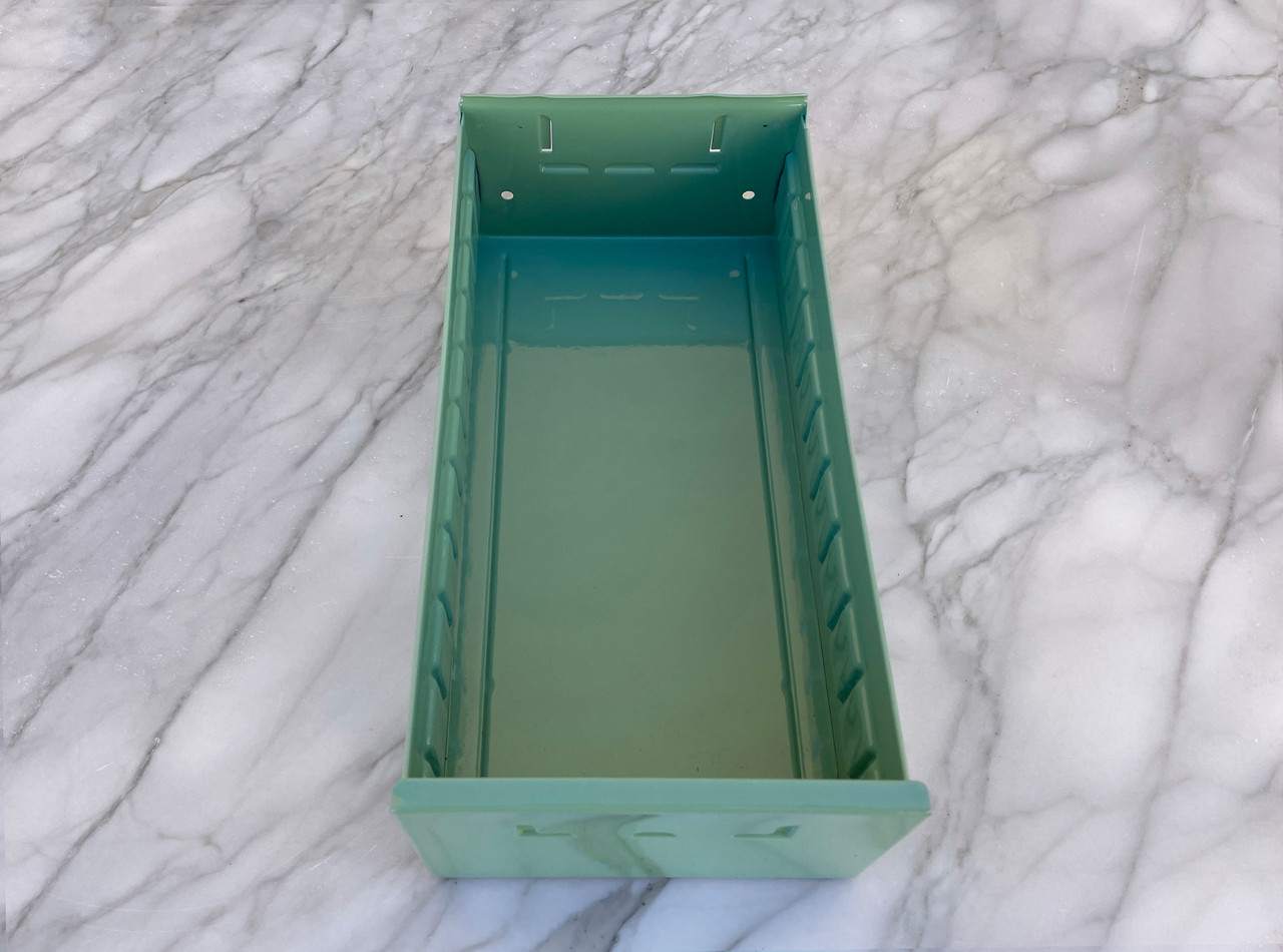 Fab 1950s steel filing drawer powder coated/ refinished in pistachio green. This classic, heavy-duty organizational bin is perfect for storing anything from office supplies to recipe cards. Getting organized never looked so good.