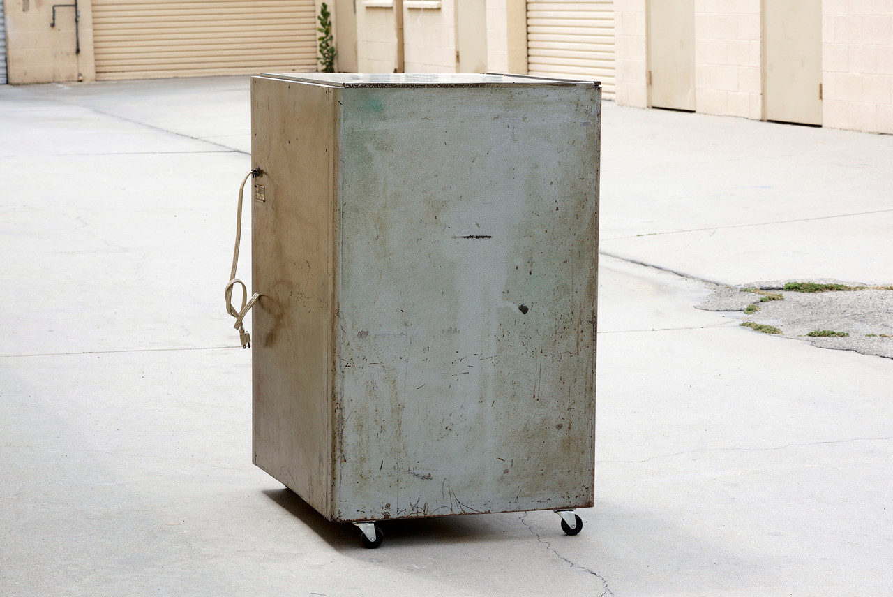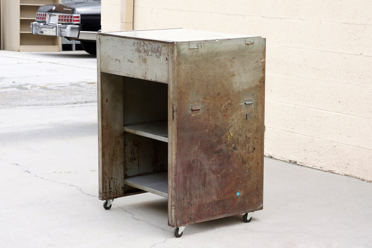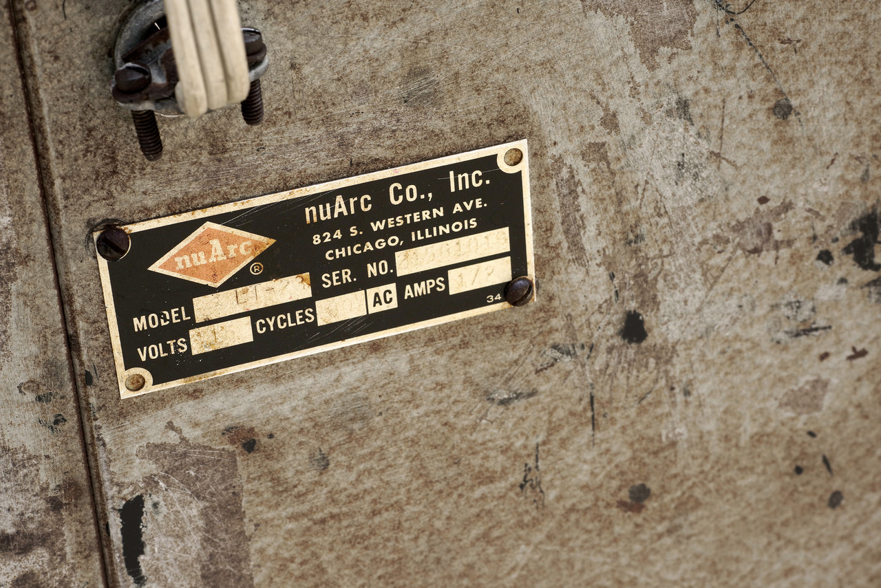 1960s industrial light box table by Nuarc Graphic Arts Equipment. It works! Put it to use to view negatives or transparencies. Makes for a neat retail display. We are selling this piece "as is;" structurally and functionally sound with excellent vintage industrial patina to steel.