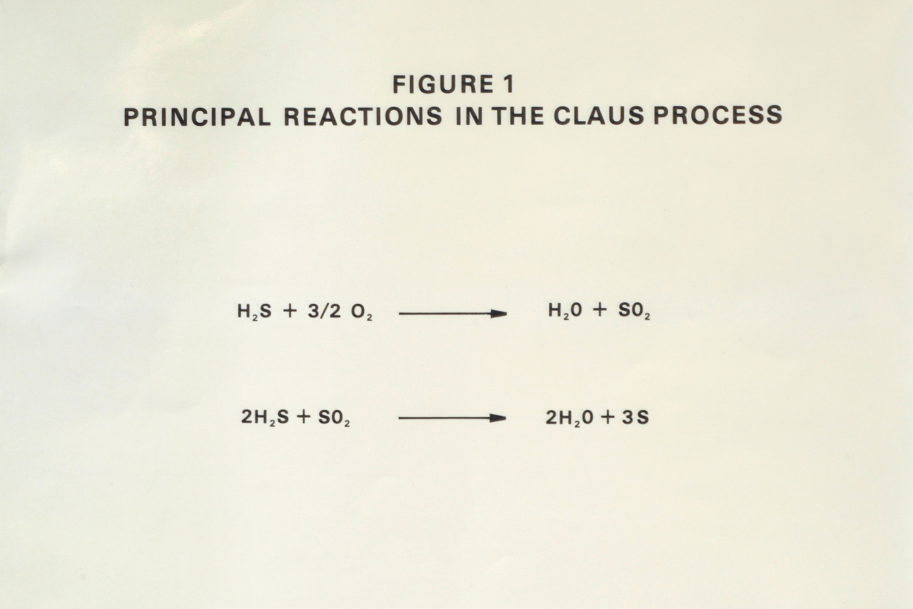 We got our hands on a stash of mid century scientific diagrams from the archives of the Griffith Observatory, Los Angeles. Figure 1, pictured here, breaks down "Principal Reactions in the Claus Process." Don't ask us to explain what on earth that means (something to do with recovering elemental sulfur from gaseous hydrogen sulfide?...), but we sure think it's a neat vintage print.
