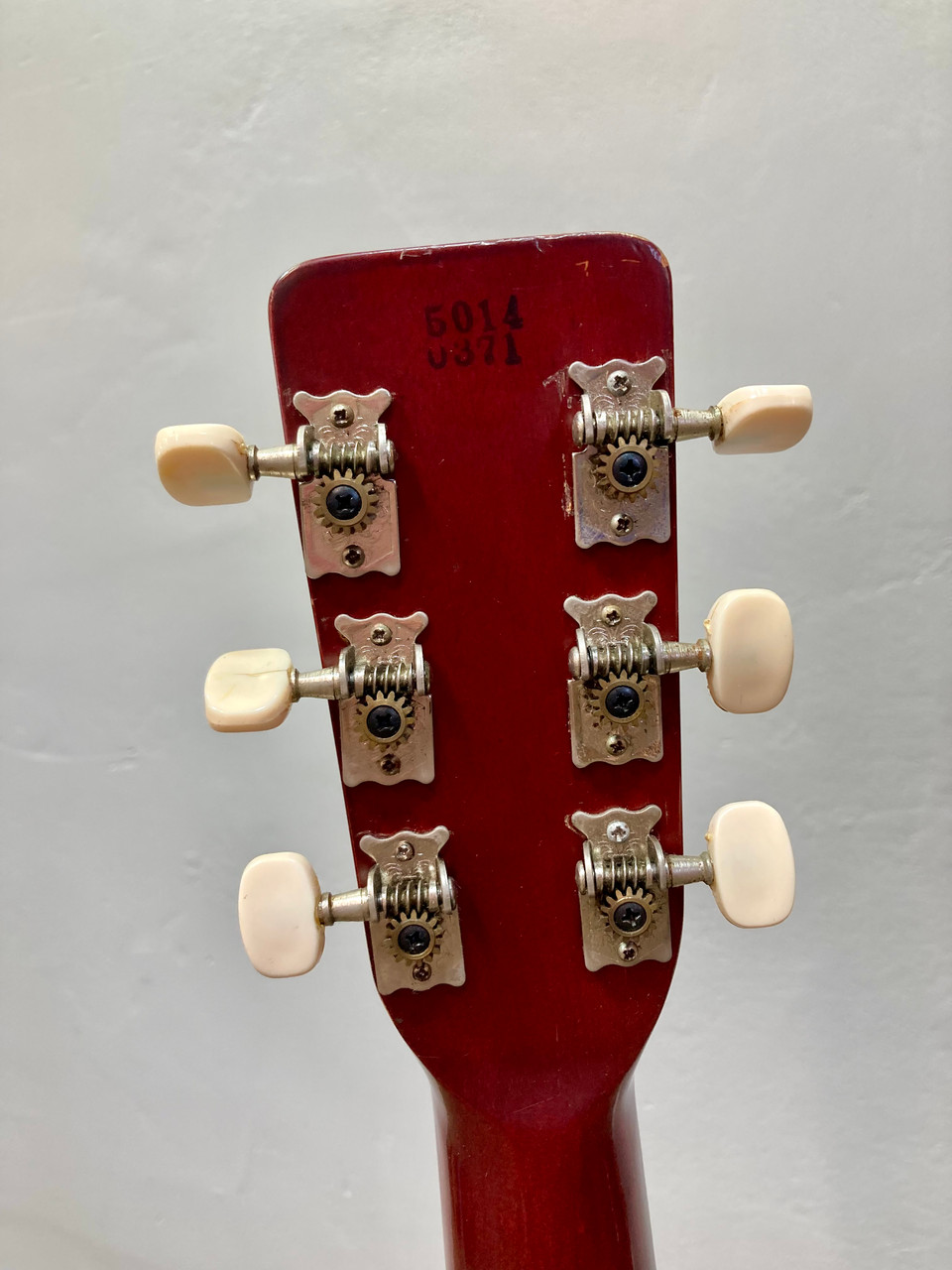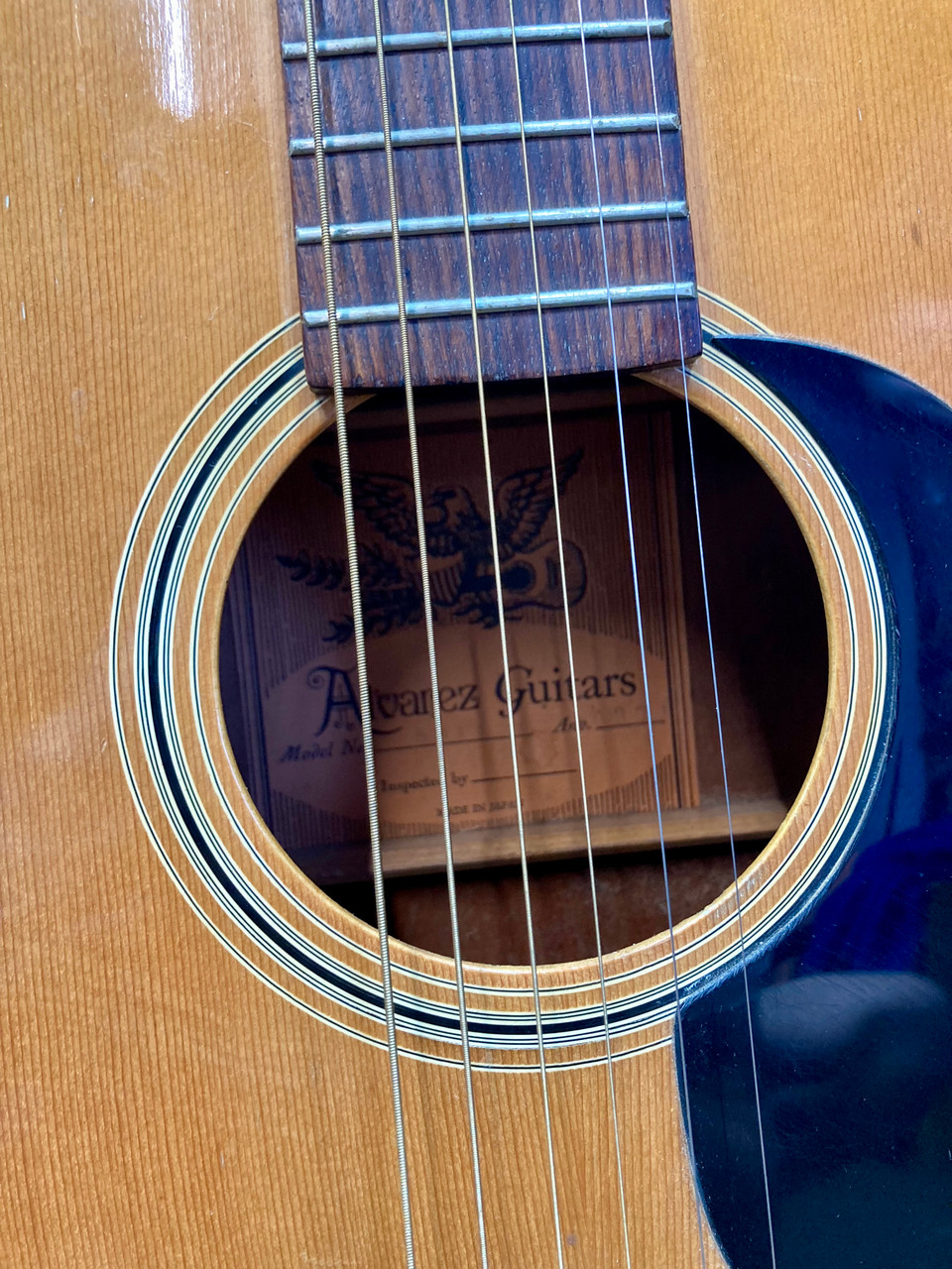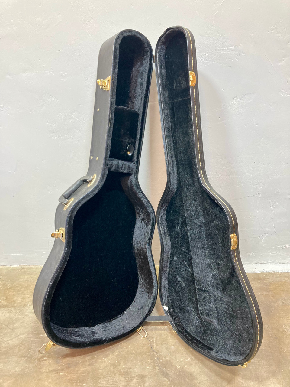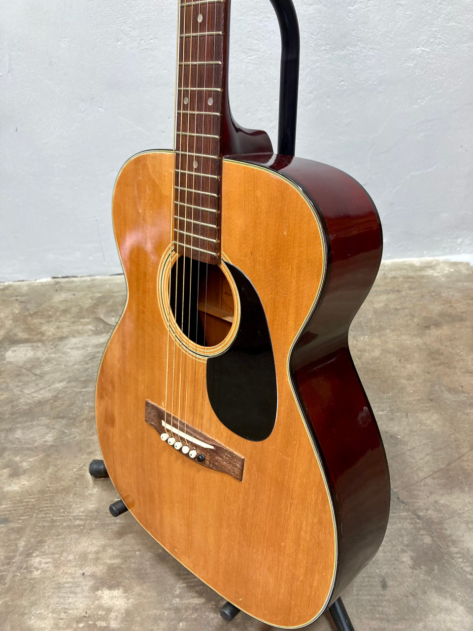 Japanese-made Acoustic guitar, made with a spruce top. Classic 70's vintage guitar. Has minor cosmetic issues, and are depicted in photos. Case interior is in fantastic condition.