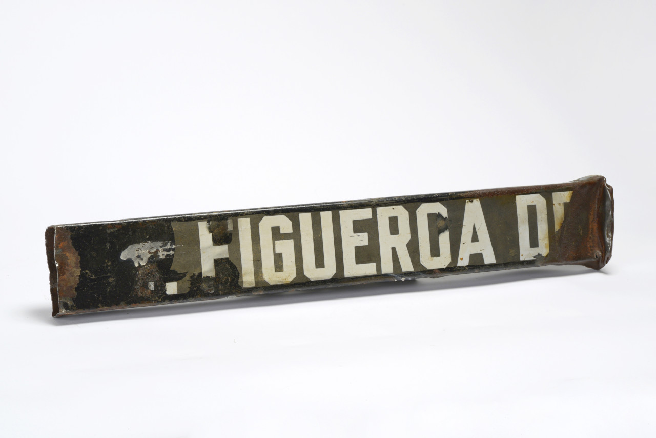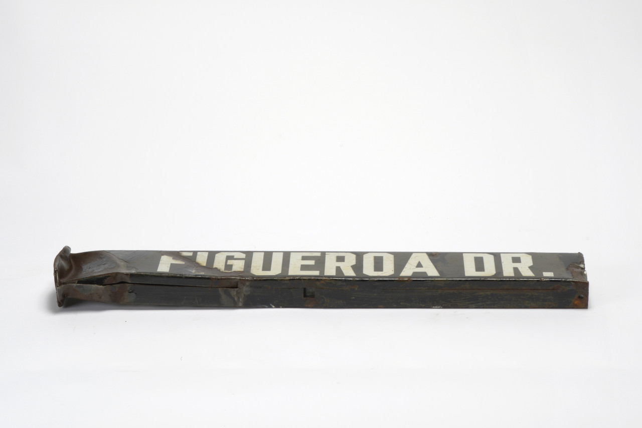 This antique "Figueroa Dr." street sign dates back Los Angeles, c. 1900s-1920s. Made of porcelain enamel on heavy duty steel with all-caps gothic style letting. A must have for the history of L.A. enthusiast!