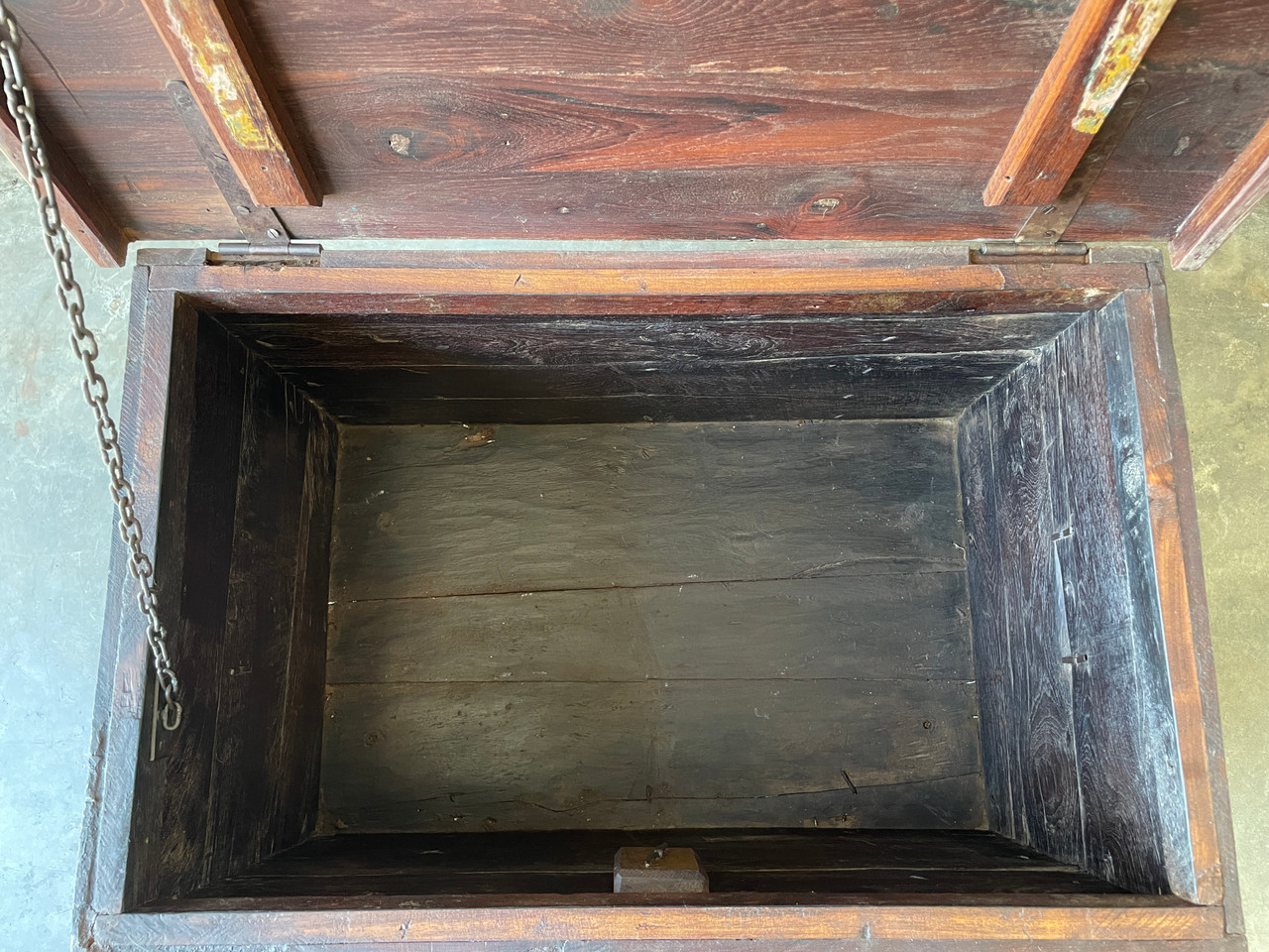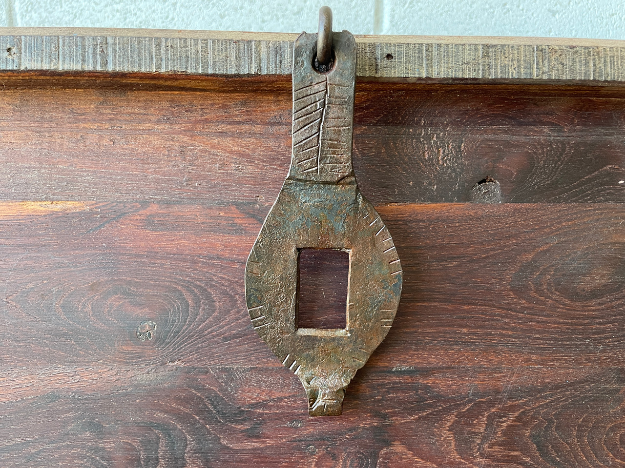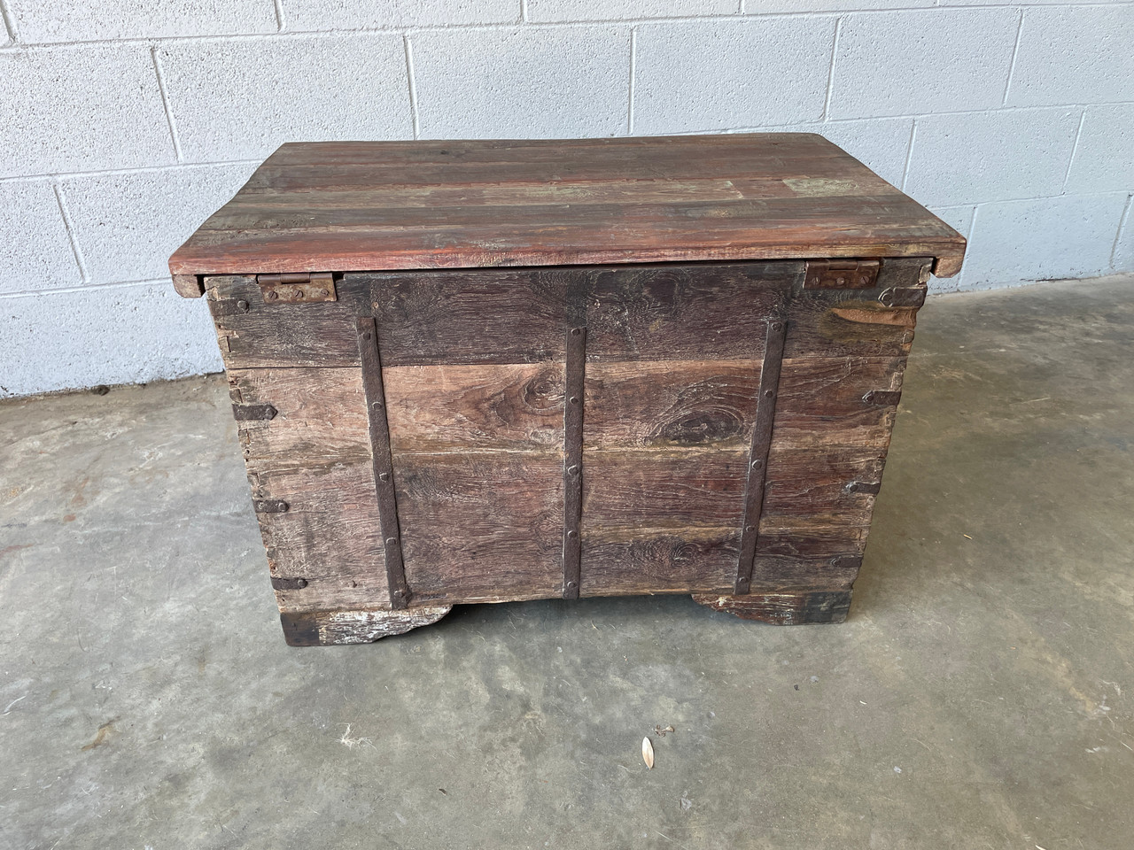 Antique Indian teak wood trunk. Handcrafted with wrought iron & brass hardware. Very heavy! Perfect vintage storage solution. Use it to store your bedding, and linens, or even use it as a toy chest! In excellent condition as pictured.