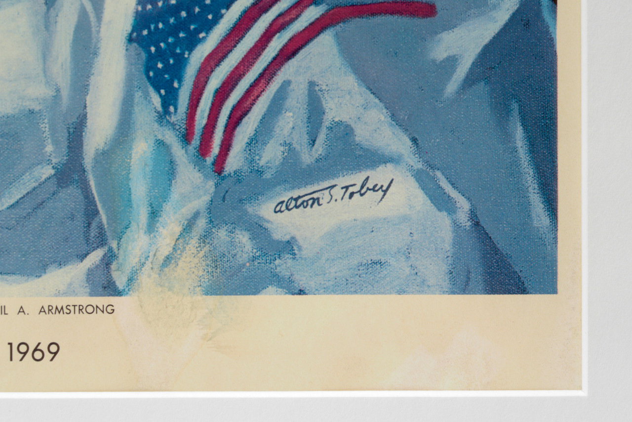 Original vintage poster ASTRONAUTS OF APOLLO 11- FIRST ON THE MOON 1969. This classic memorabilia poster is a must have for space age enthusiasts. Featuring wonderful artwork by Alton S. Tobey.