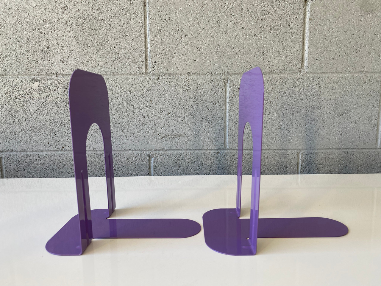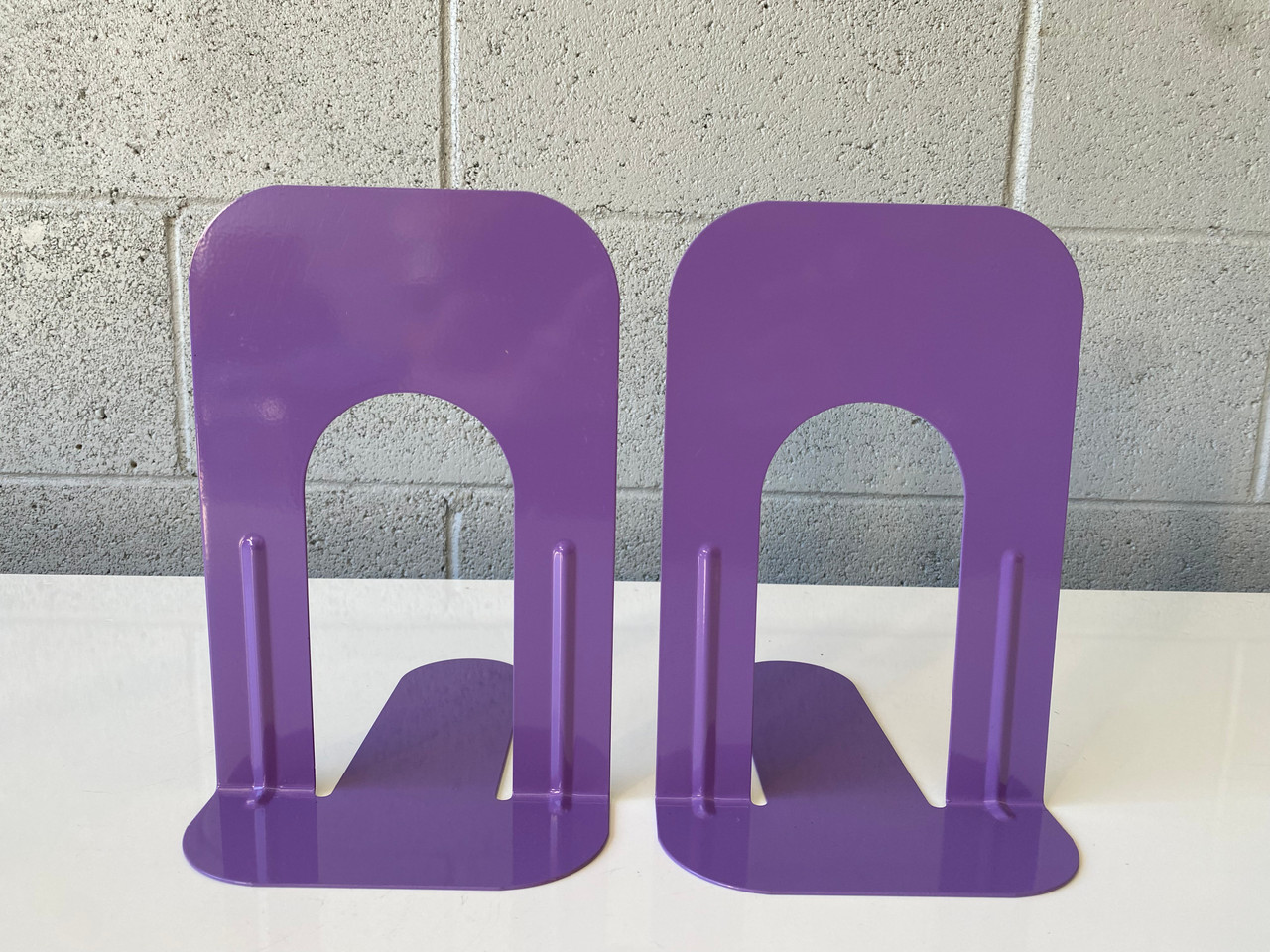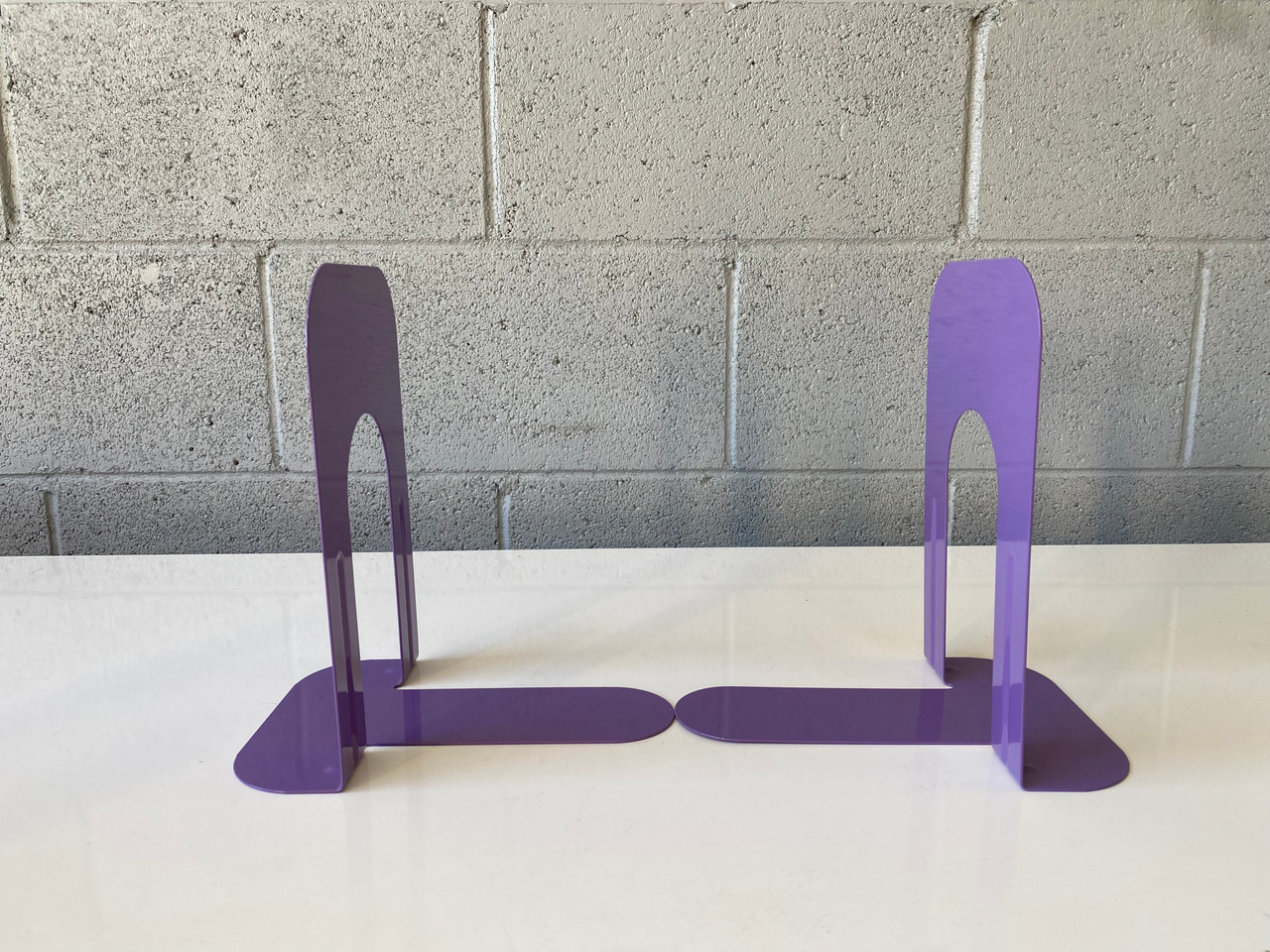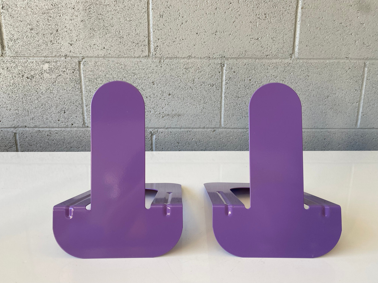 Vintage library-style bookends in gloss purple. A instant, playful way to organize and brighten your bookshelf. Priced per pair.