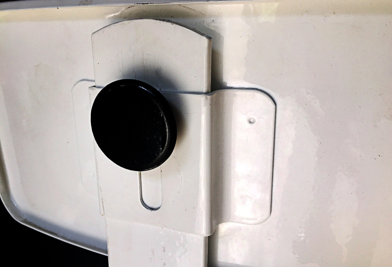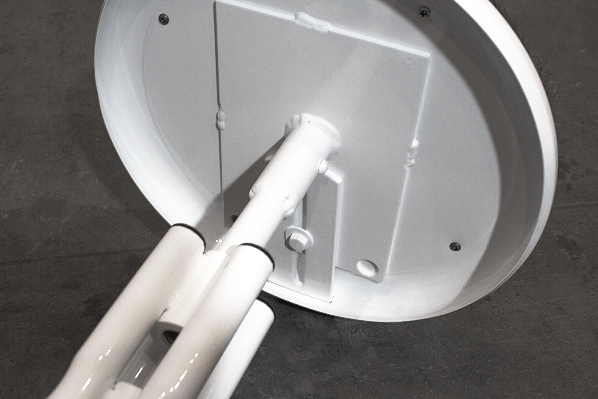 This is a one of a kind "Frankenstool" put together from miscellaneous stool parts. Newly powder coated in gloss white with hair-on cowhide seat. A Rehab vintage original.