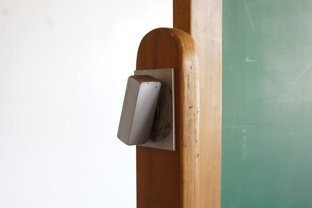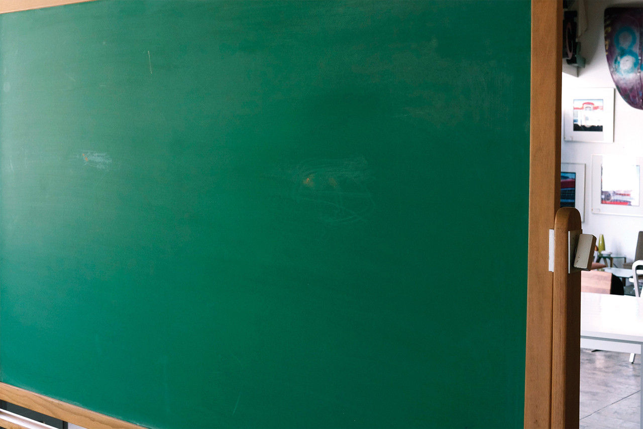 This large, vintage, double-sided chalkboard is a classic schoolhouse accessory featuring a wood frame, streamline steel hardware and casters for easy movement. We guess it is from the 1960's. Excellent condition with a light vintage patina- the few paint splats and light nicks only add to the charm.