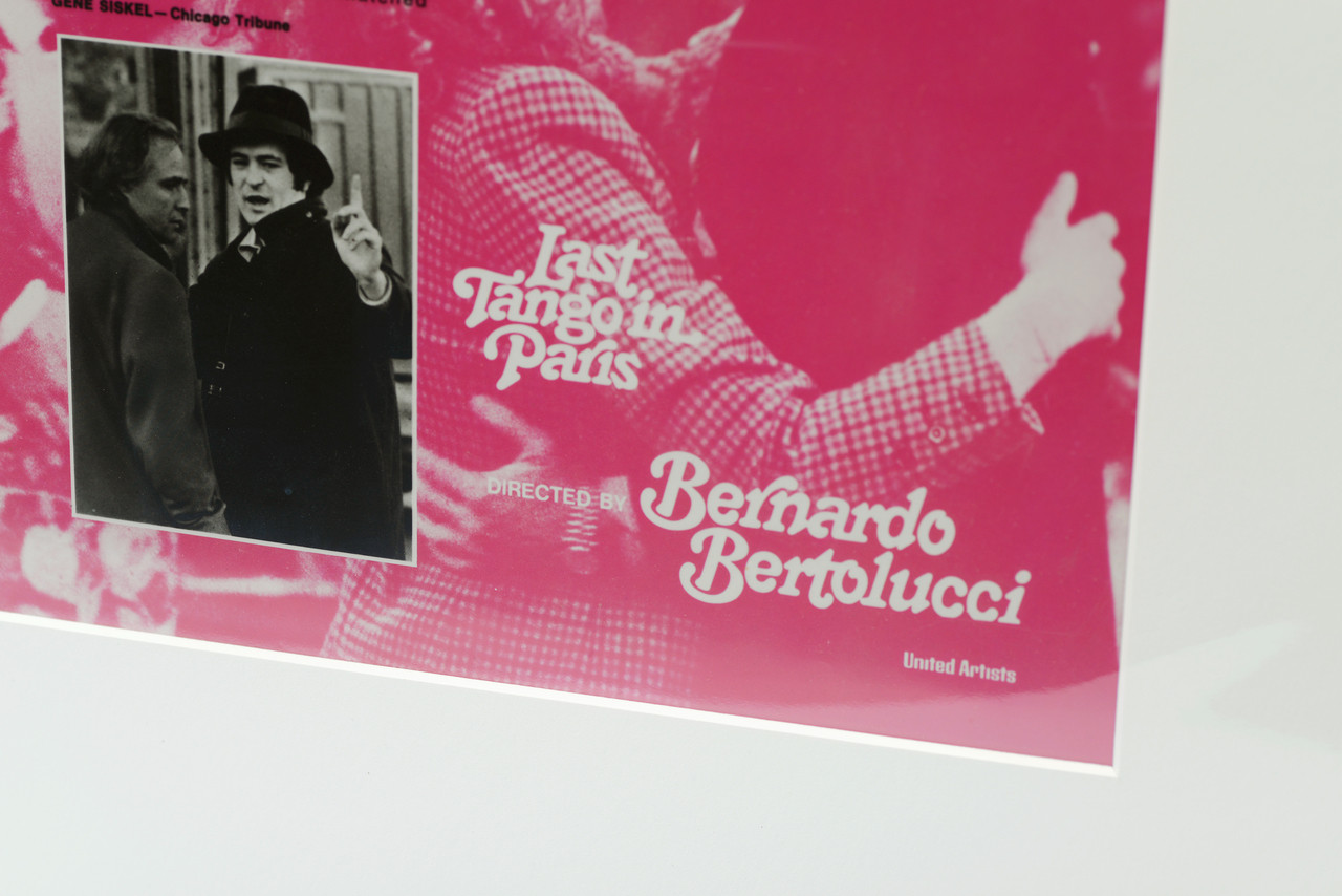 Authentic Hollywood memorabilia! Vintage movie advertisement art transparency for Last Tango in Paris, 1972. Newly prepared with new custom acid-free overlay mat and protective plastic sleeve. Overall in excellent vintage condition with very gentle surface wear. 1 available.