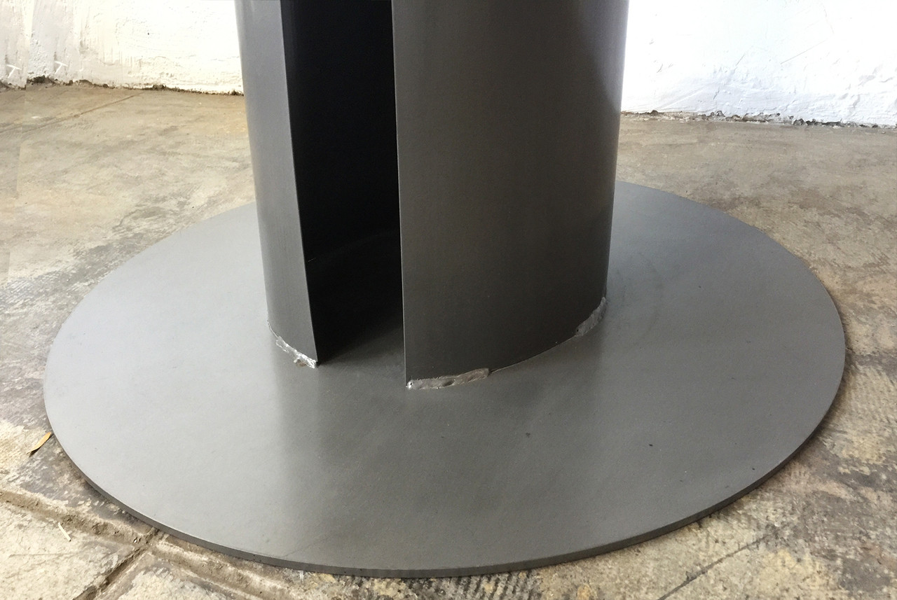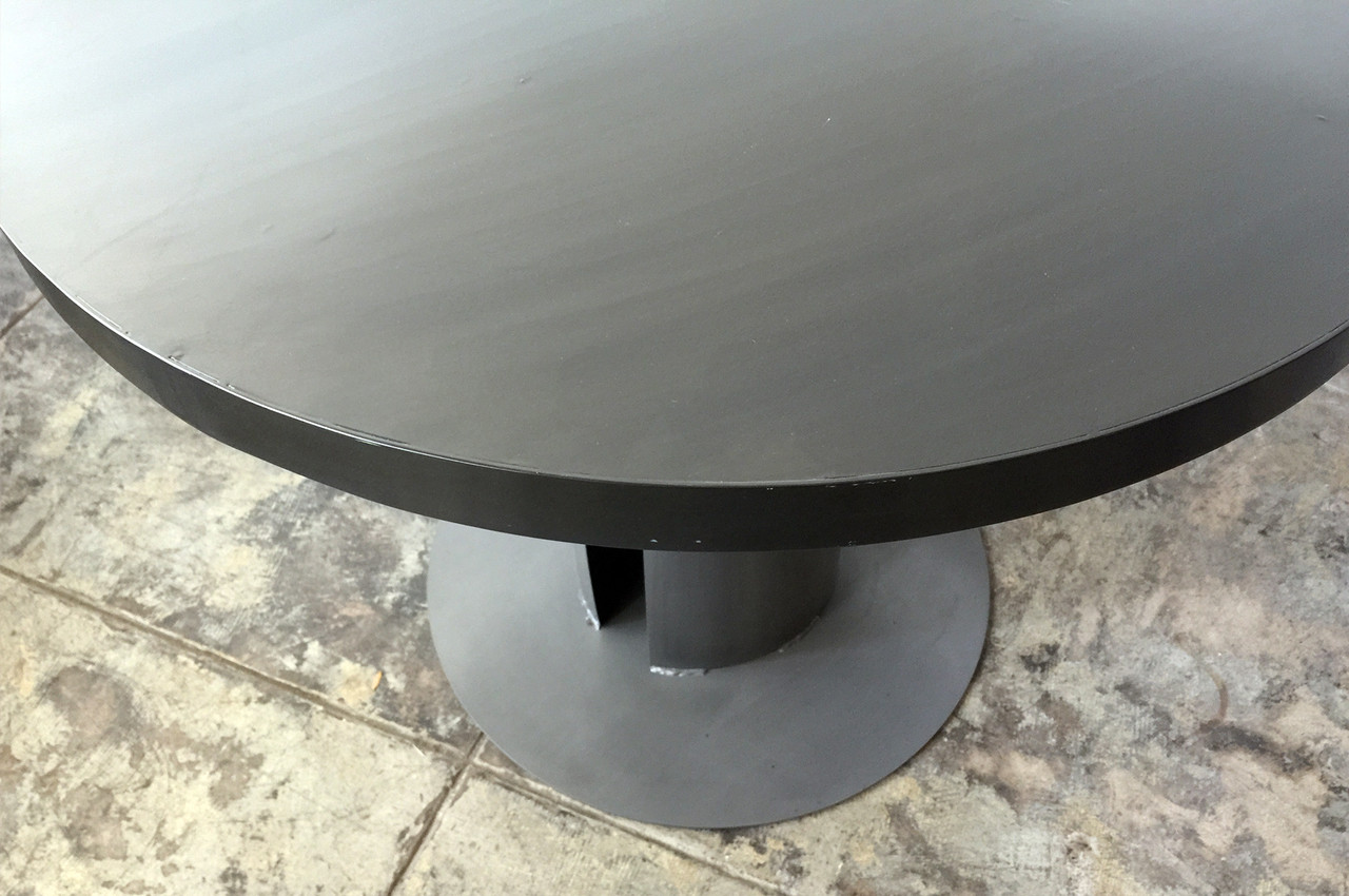 We designed our original steel dining/ dinette table to resemble Machine Age factory gears. Beautifully constructed with hand patina steel. Form meets function with this industrial inspired piece.