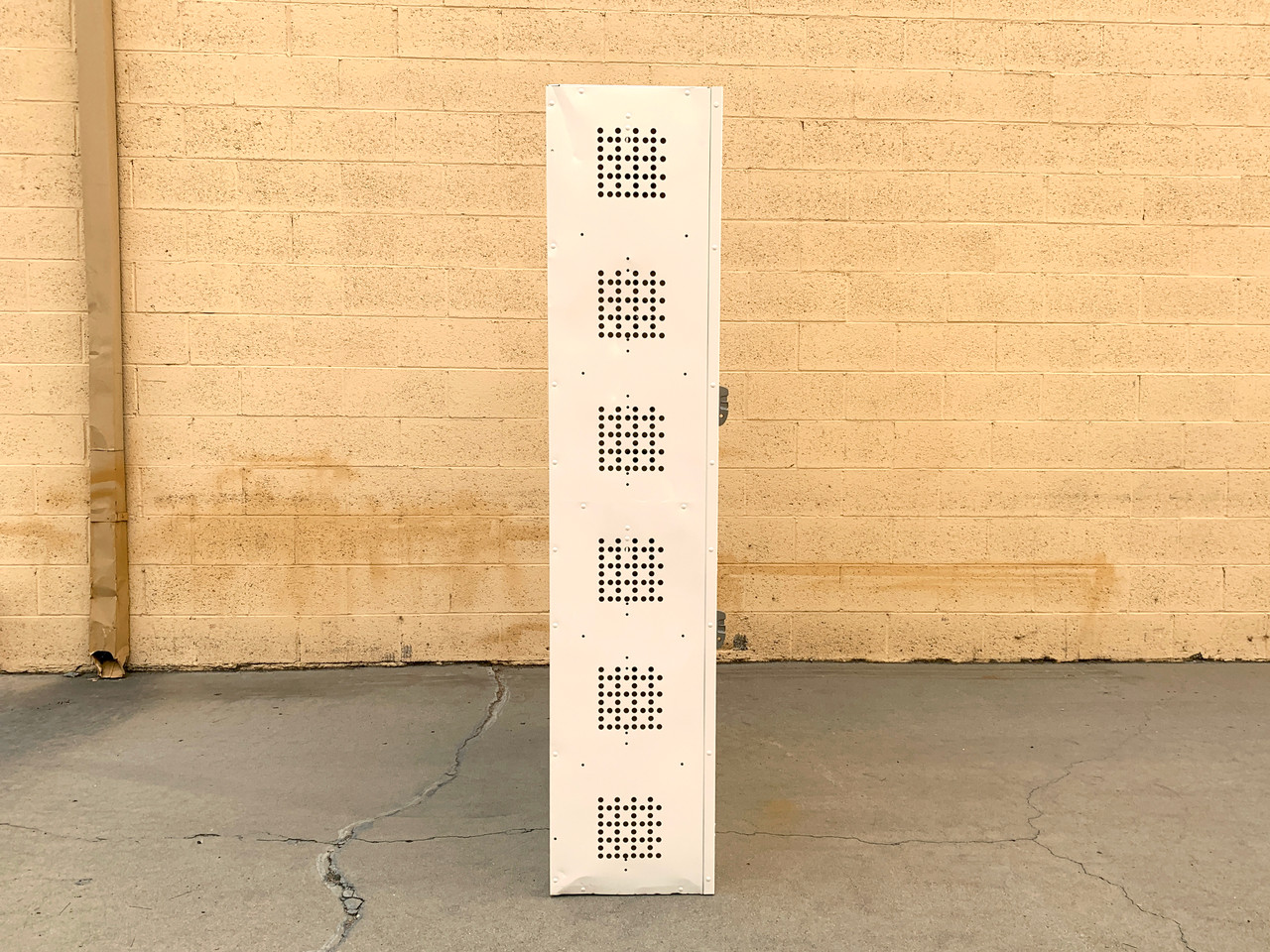 Mid century 2 tier x 4 column locker unit newly refinished in two-tone Mellow Yellow (YL 01) and Gloss White. Classic WORLEY brand with original lock hardware. It's the ultimate retro storage solution ;)