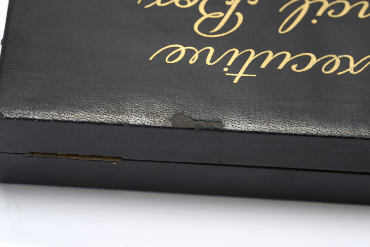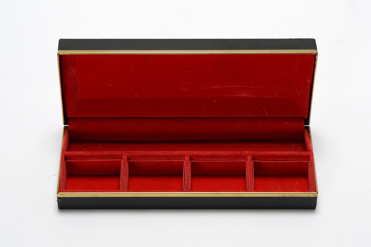 Super retro 1960s "Executive Pencil Box," the perfect addition to your mid century office space. Made of vinyl exterior with brass trim and red velvet interior. Interior features 4 compartments.