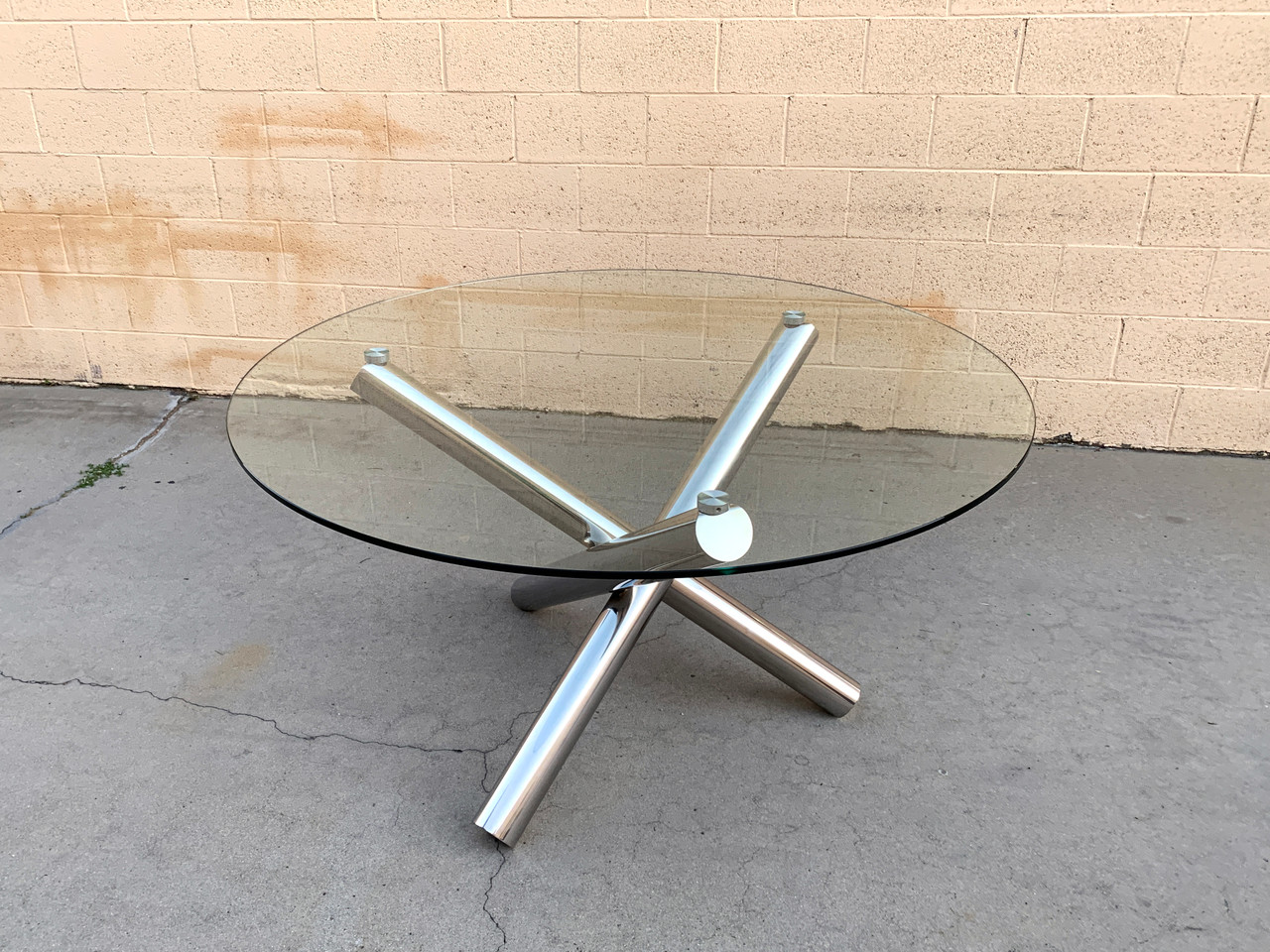 Vintage chrome and glass are both in excellent condition. Unattributed.