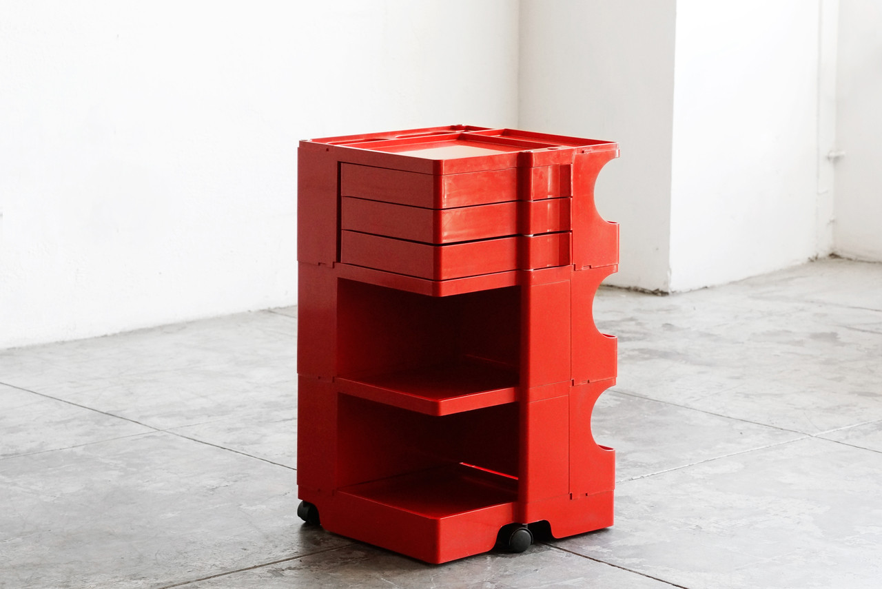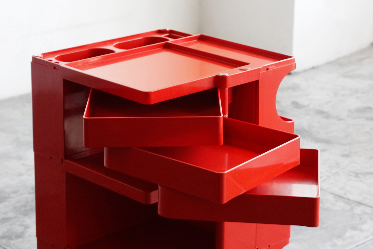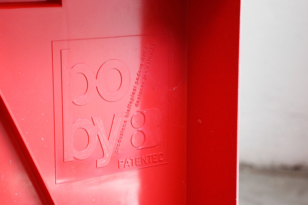 Original 1969 Boby Portable Storage System by Joe Colombo. Embossed with signature and logo. Colombo's iconic storage cart is a classic. Please note minor surface damage to one pull-out shelf.Dimensions: 15" d x 17" w x 29" h