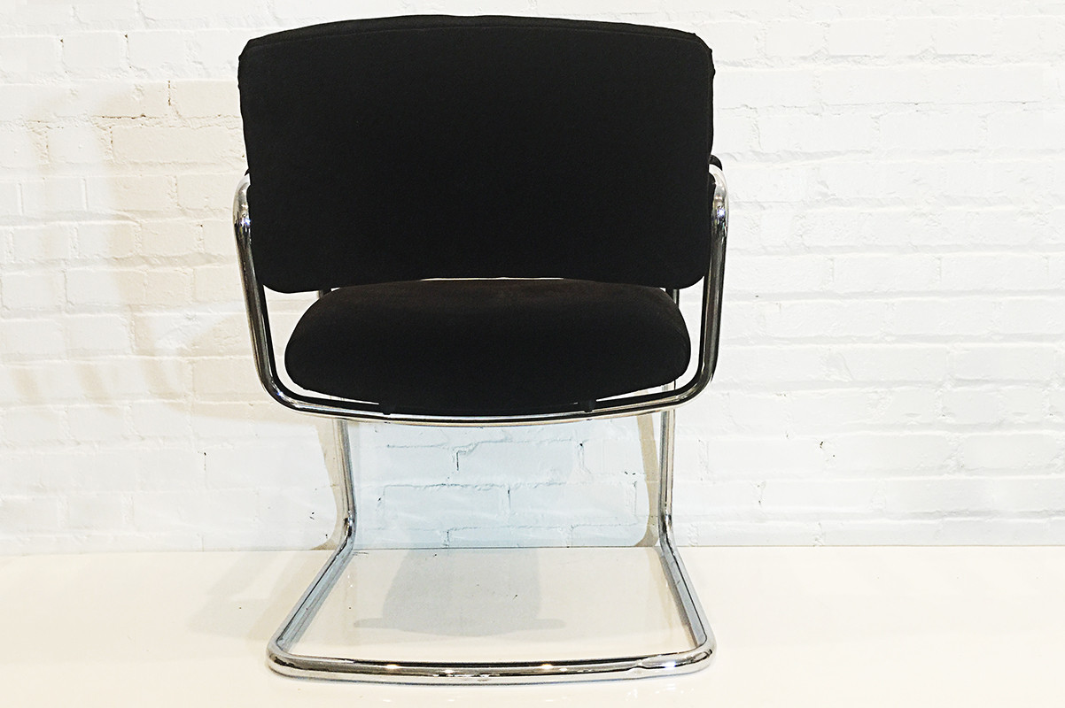Featured here - the Lobby Lounge Chair in grey vinyl with walnut arm caps.