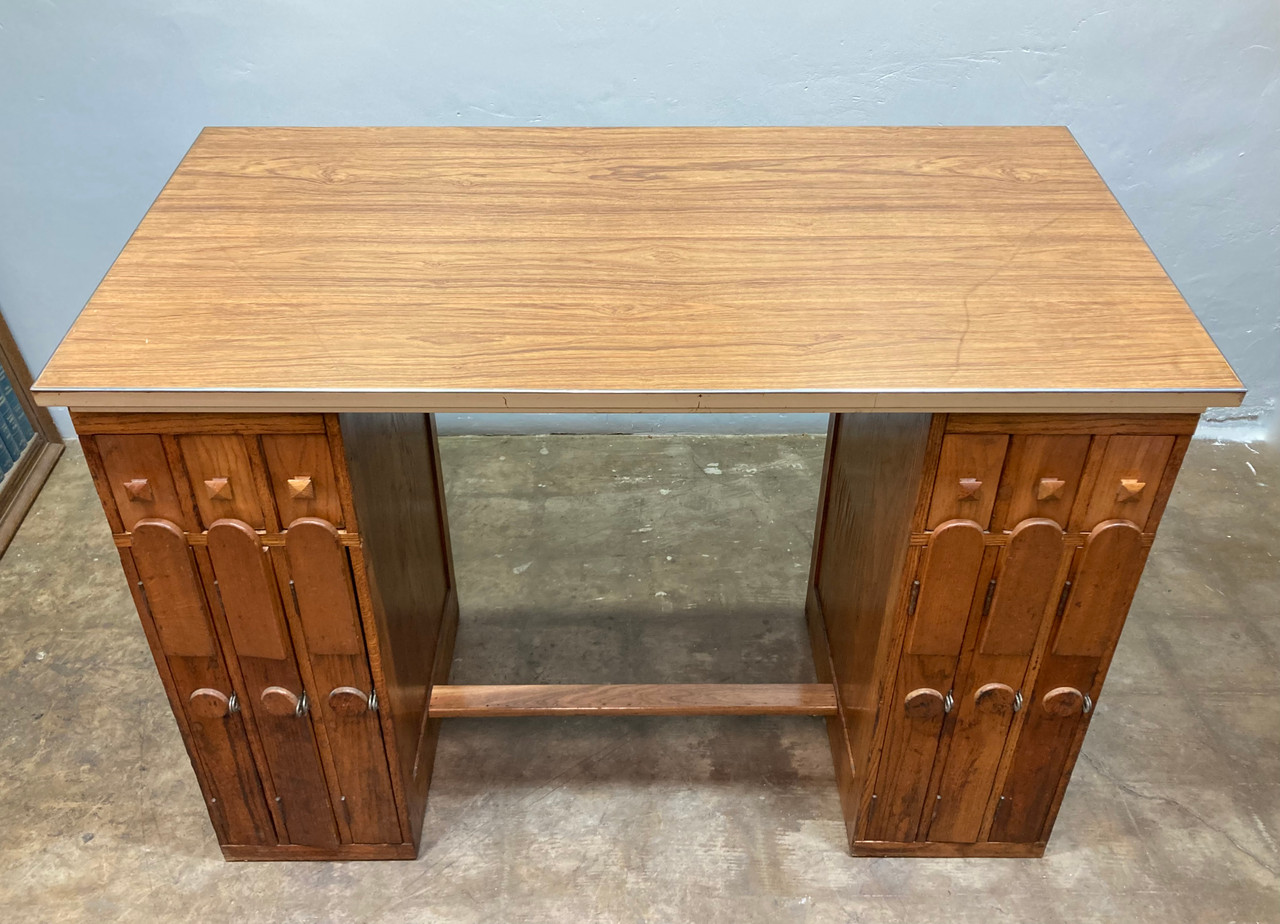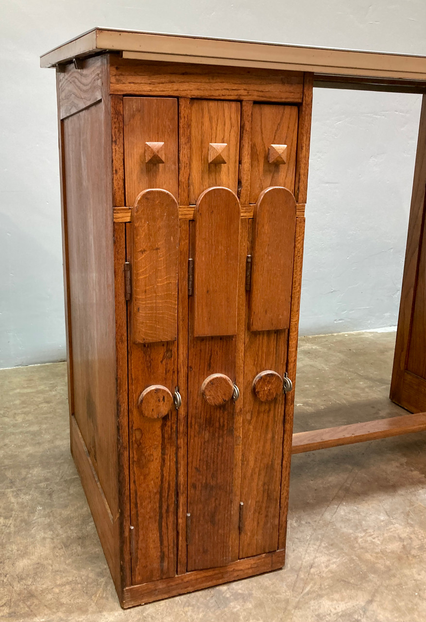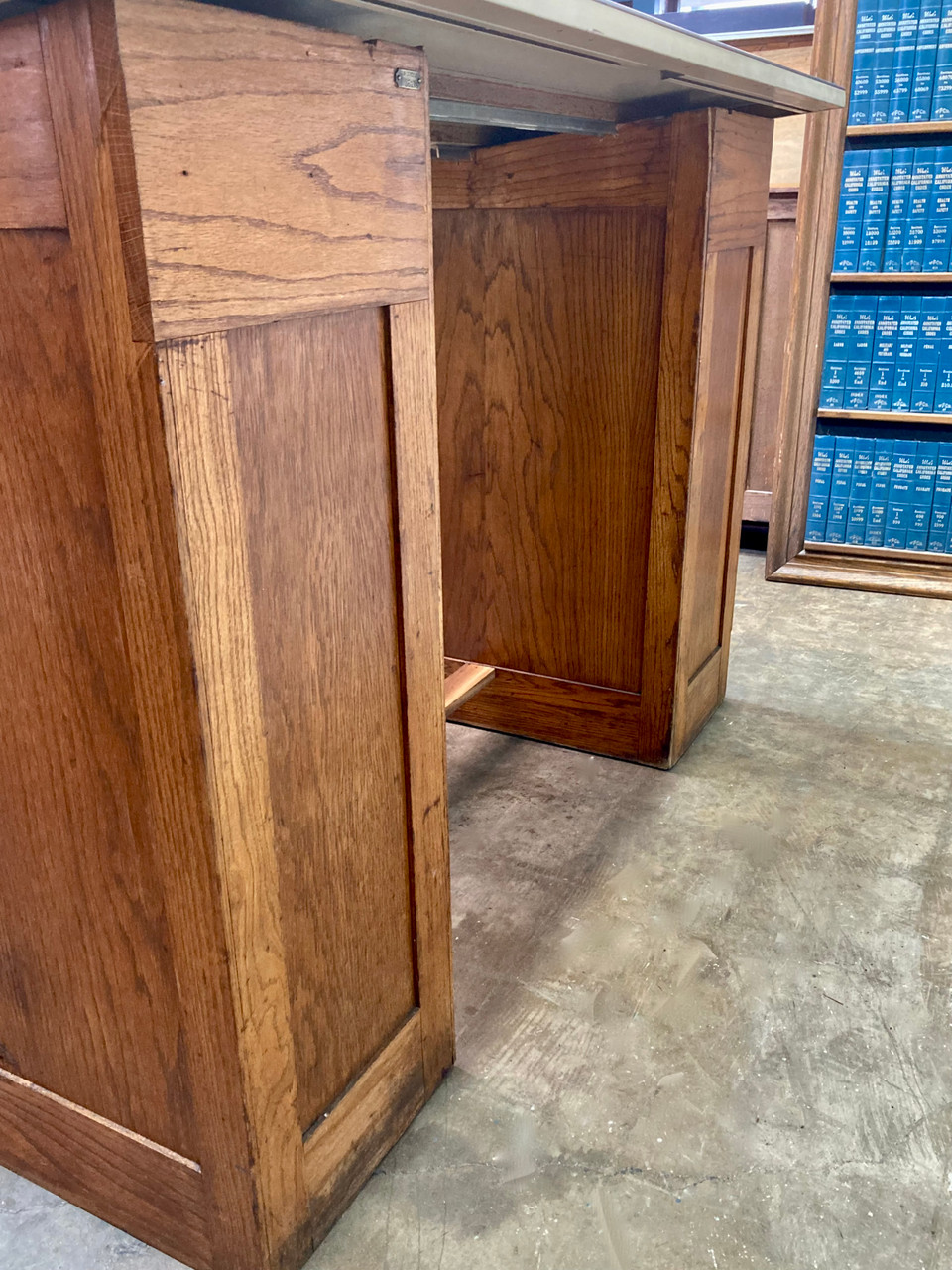 Awesome vintage drafting table base with 12 storage compartments, and a new table top reclaimed from a 1970's SteelCase desk. Standing height for use as a work table, drafting, or drawing.