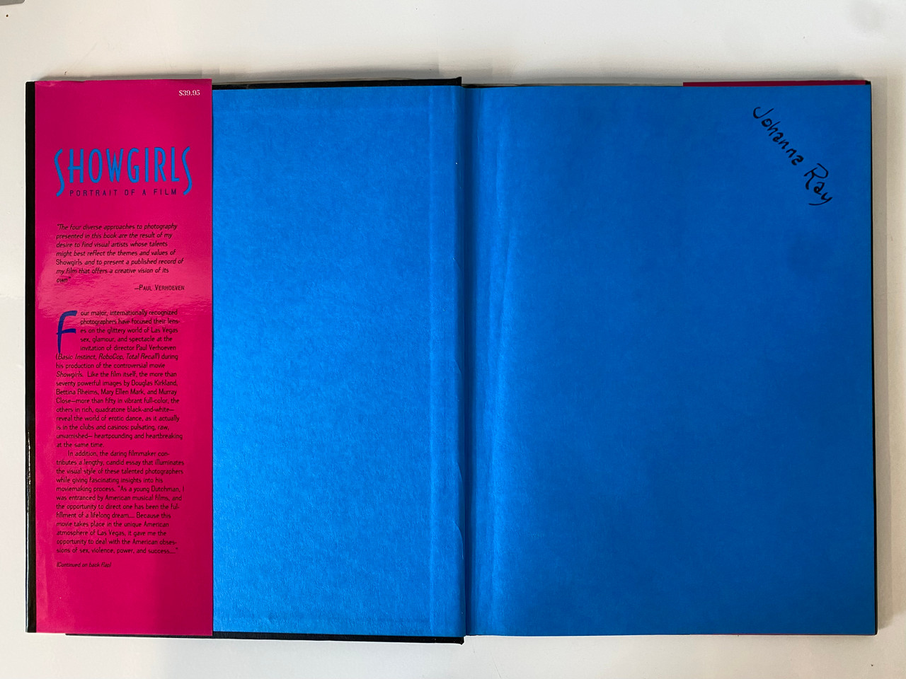 Vintage coffee table photography book on making of the film Showgirls, written and shot by Paul Verhoeven (Author), Douglas Kirkland (Photographer), Mary Ellen Mark (Photographer), Bettina Rheims (Photographer), Murray Close (Photographer). Brilliantly displays the erotically-charged steamy drama of the world of Las Vegas lap dancing, strip clubs, and top-of-the-line topless showgirl revues. Signed by the movie's casting director.