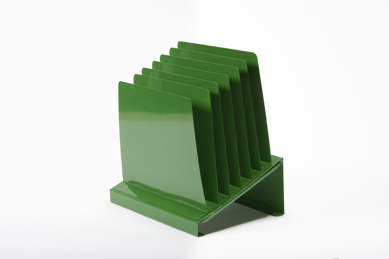 This 1970s retro office organizer is an uncommon style we've haven't come across until now. Featuring 6-slots in an iconic space-age design. Powder coat refinished in Kelly Green. This retro accessory is multifunctional, ideal for sorting mail, memos or magazines; sure to keep your desk in tip-top shape.