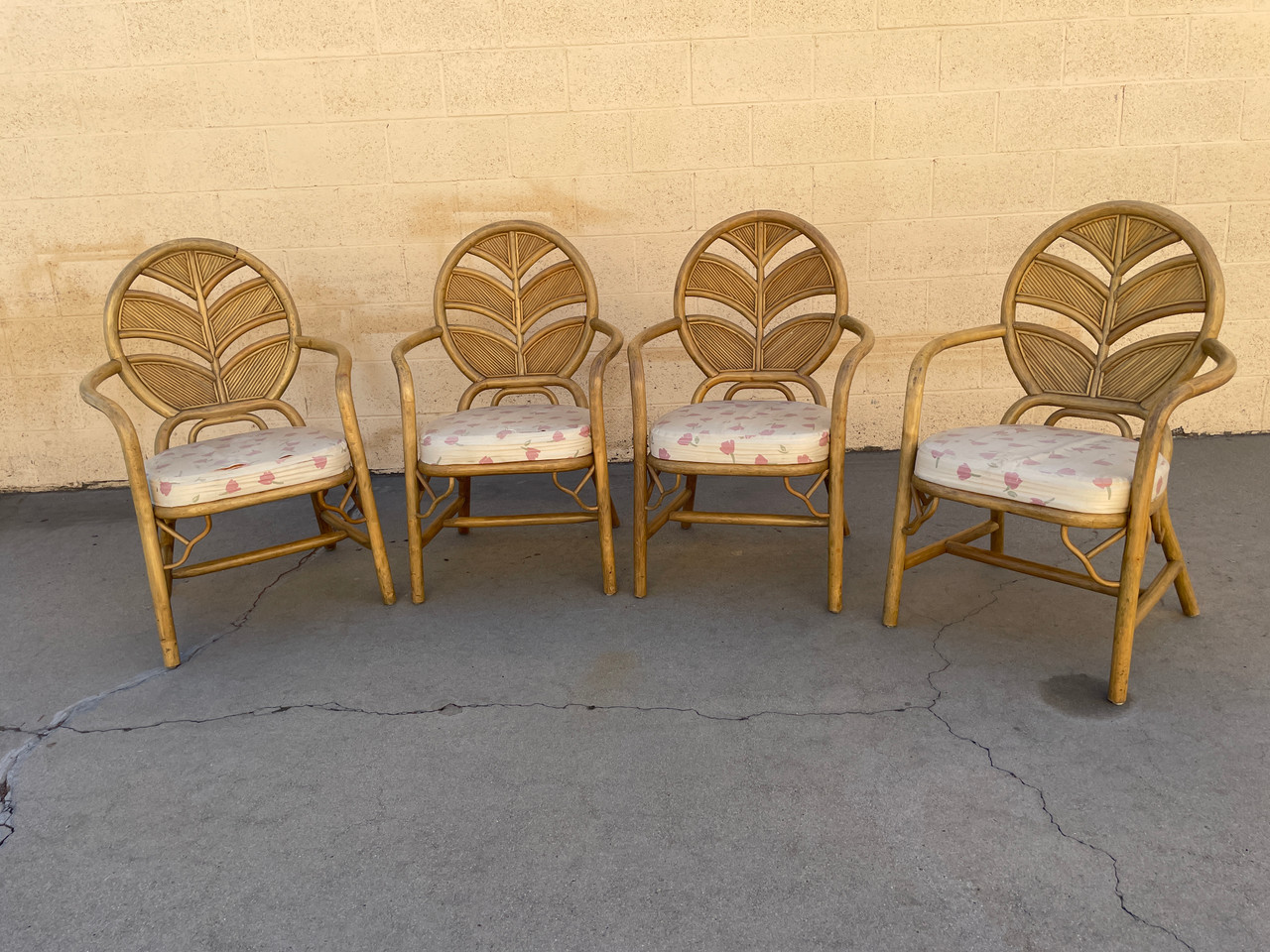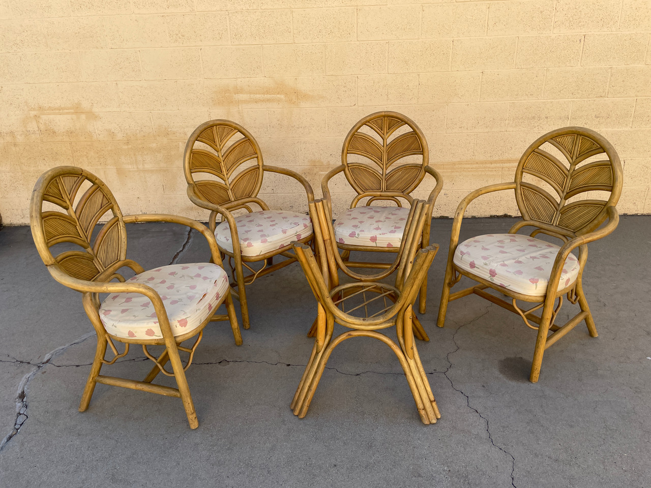 - SOLD - Split Reed Bamboo Chairs and Table Base Set