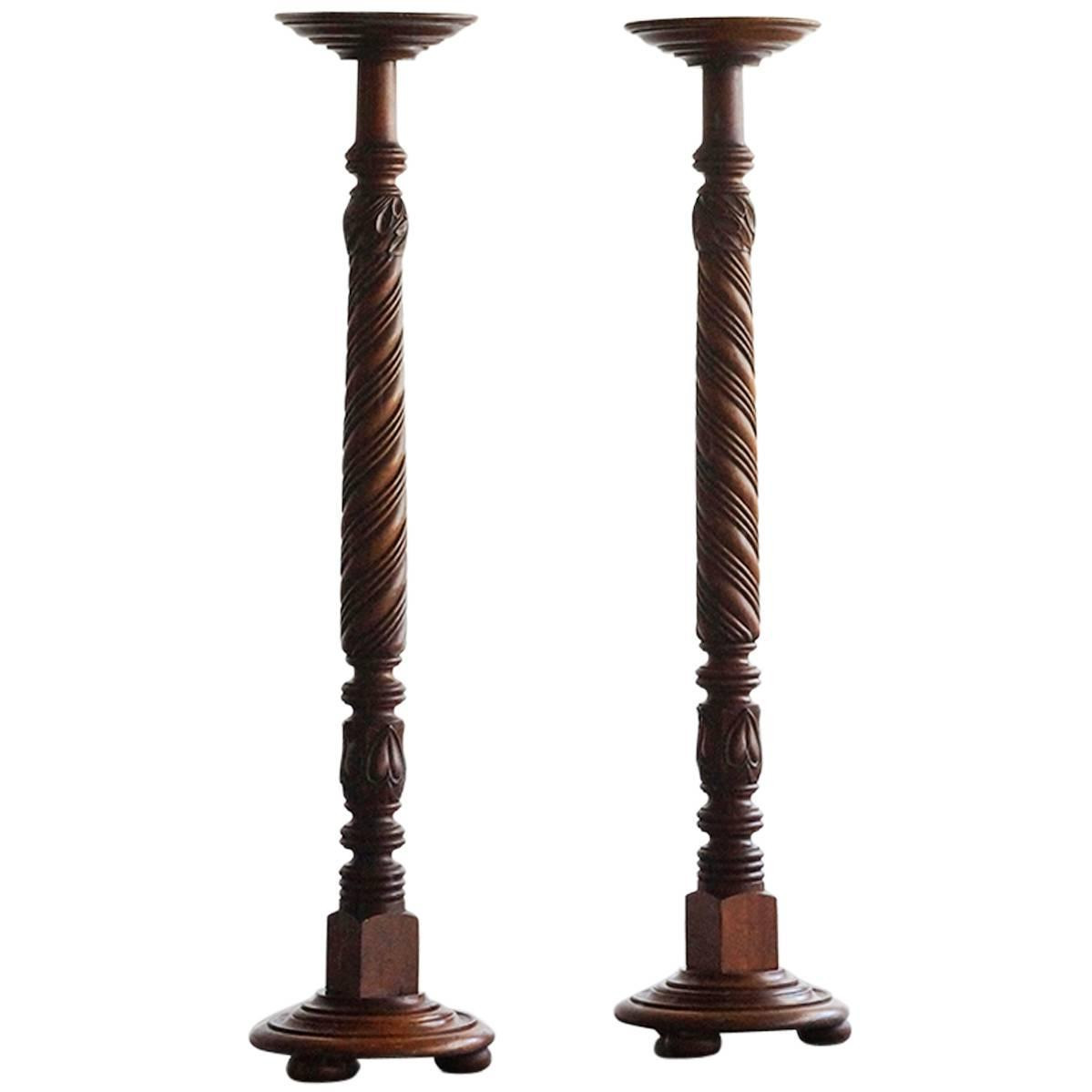 Victorian era carved mahogany plant stand. Nicely crafted spiral pattern with leaf design near top. Perfect for plant display or small lighting element.