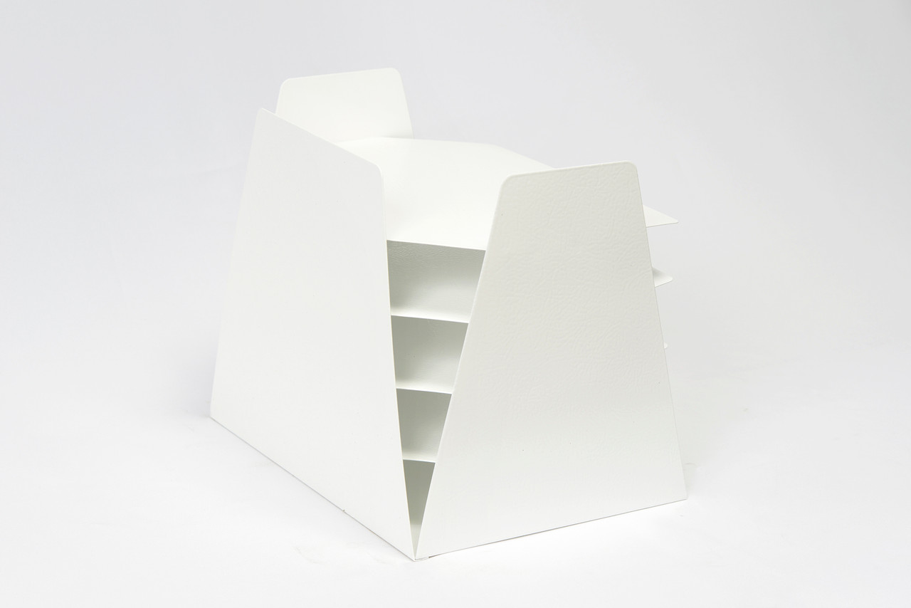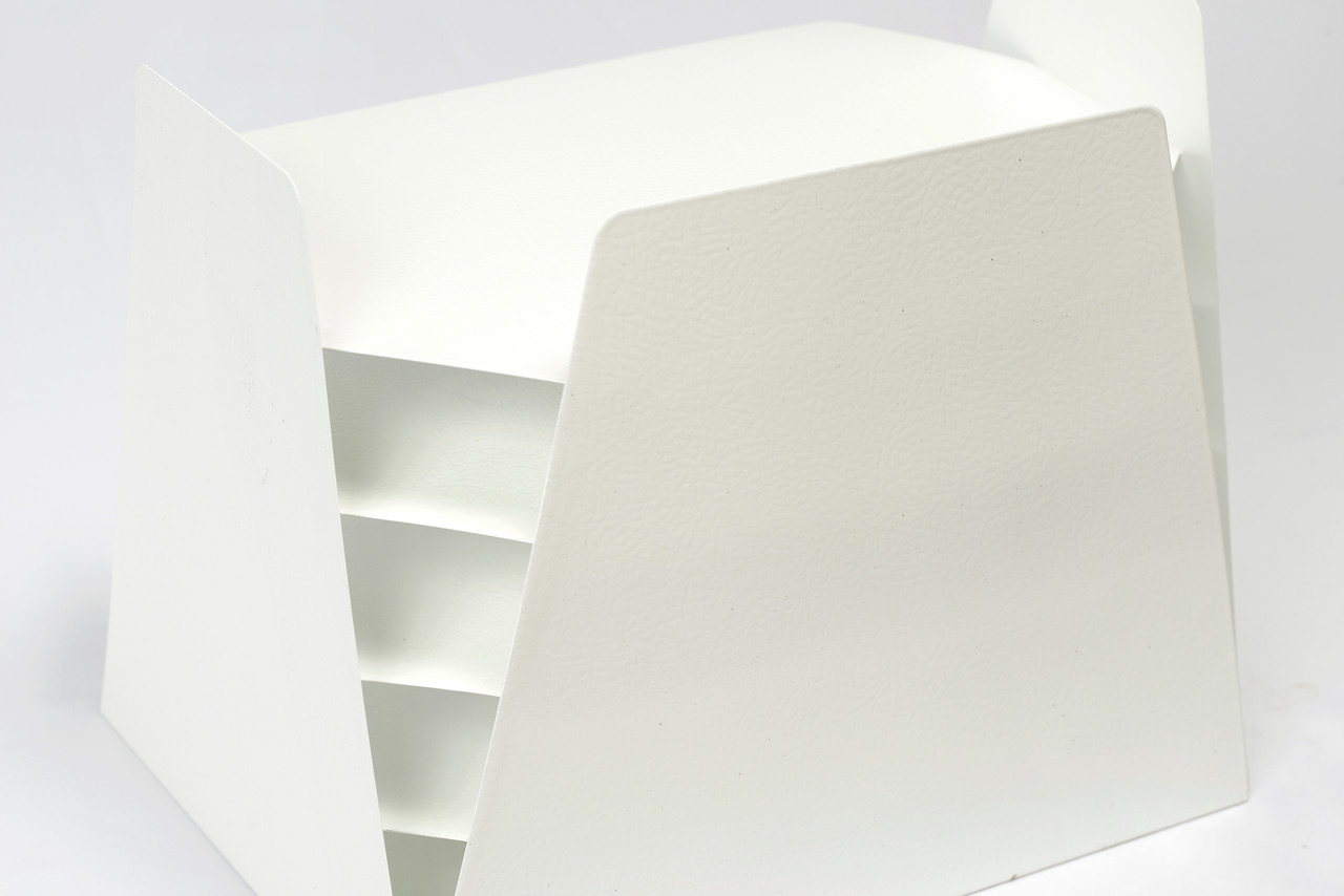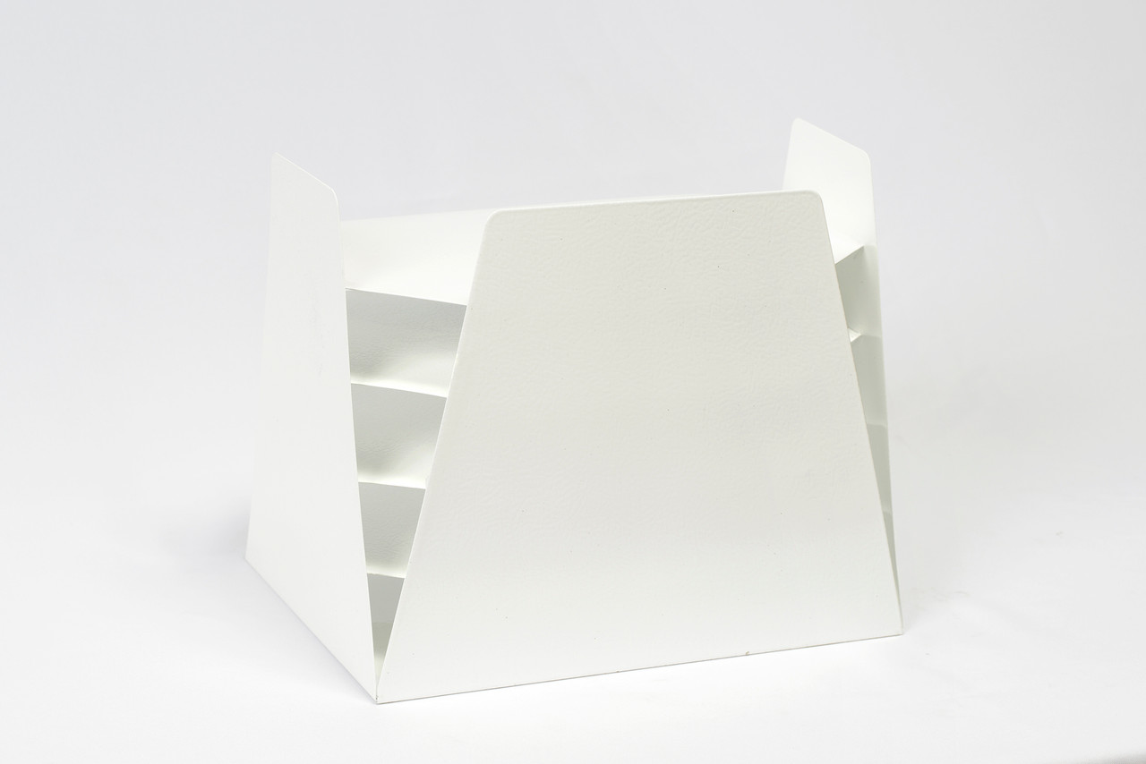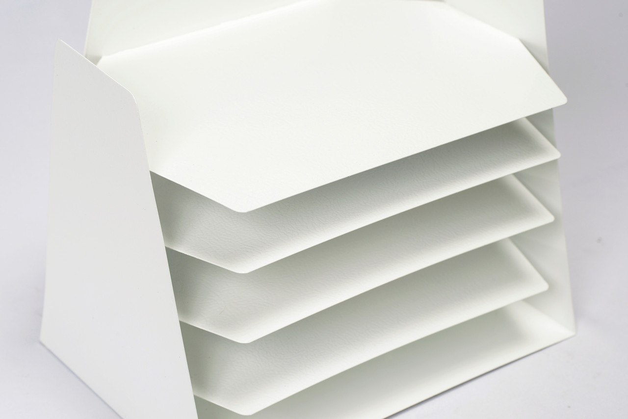 Powder coat refinished in gloss white. This iconic accessory is multifunctional, ideal for sorting mail, memos or magazines; sure to keep your desk in tip-top shape.