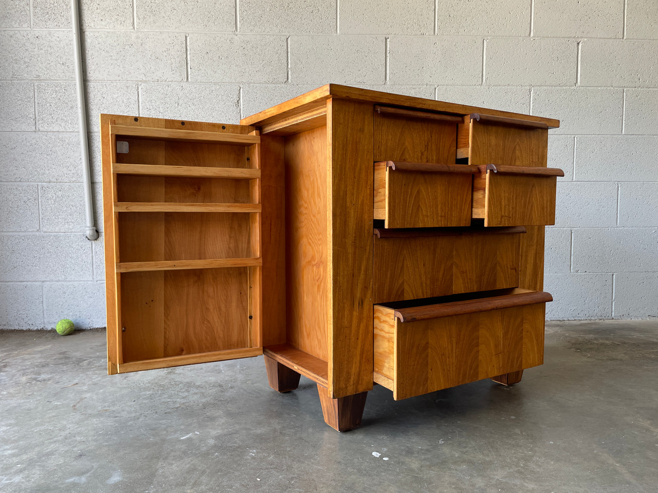 Beautiful hand-made maple wood cabinet with 7 pull-out drawers and open sides with slanted slots for additional storage. Visually appealing, sturdy, and functional! Perfect for stationery supplies, jewelry, clothes, or small item collection.