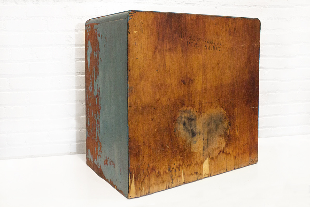 Solid mahogany cabinet with hand-painted distressed blue finish. Great as is or restored to it's original wood finish. Great for retail merchandise or collectibles.