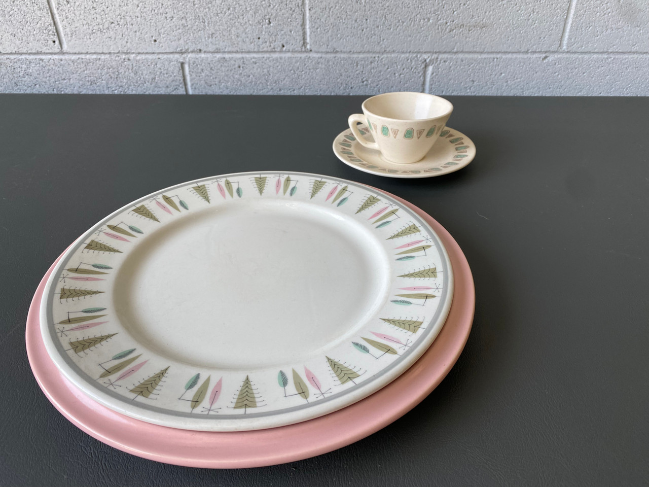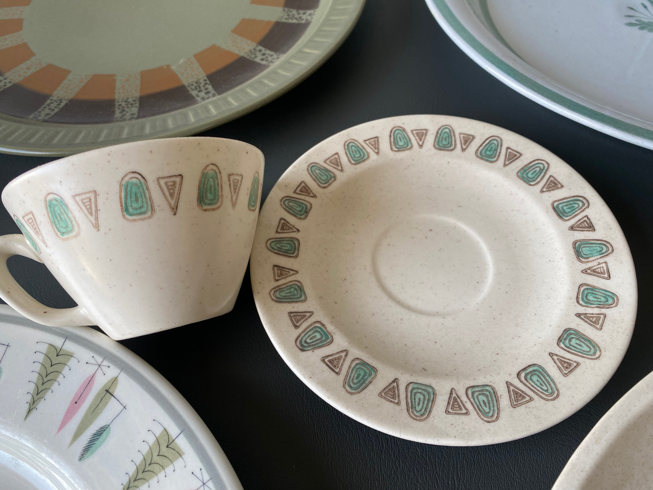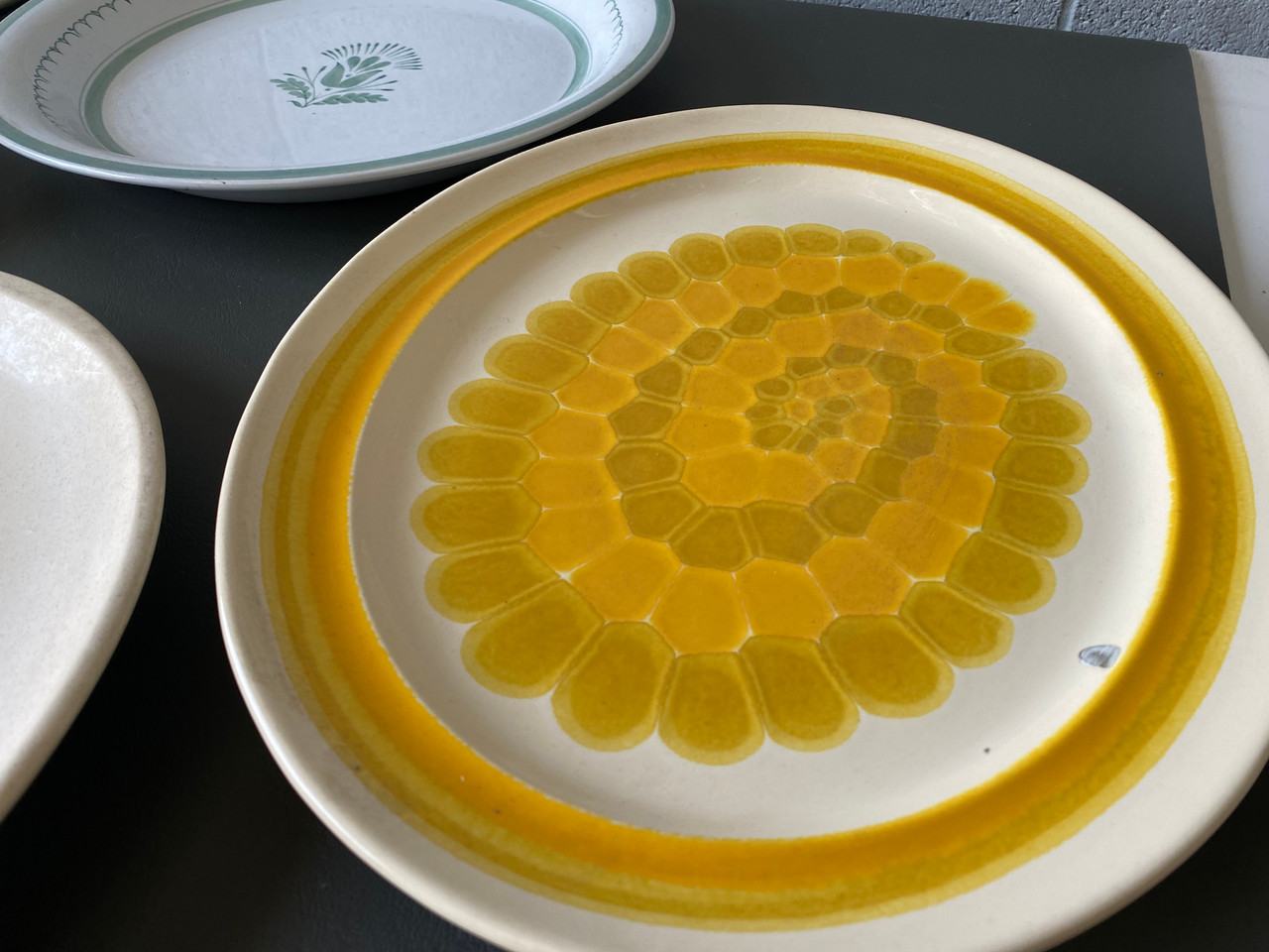 Lot of vintage plates of various colors and designs. Perfect to resell at a vintage store or to add to your personal collection.