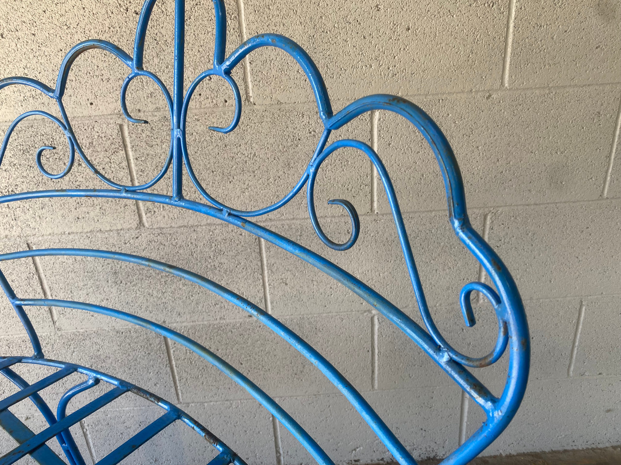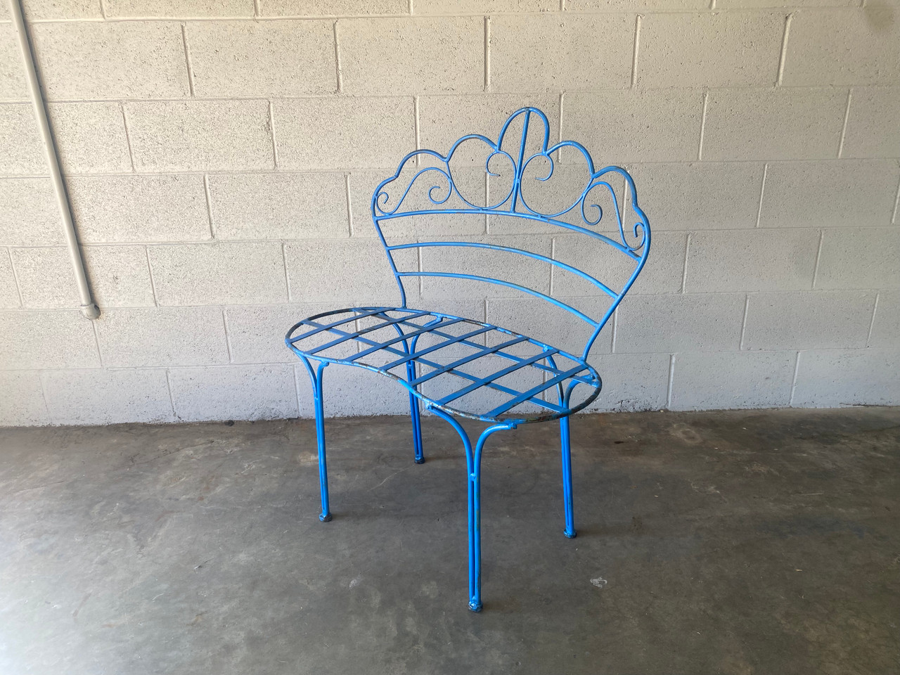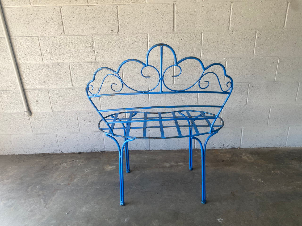 Cute two seater with chippy blue paint. Perfect for a nice cup of tea on the patio or garden